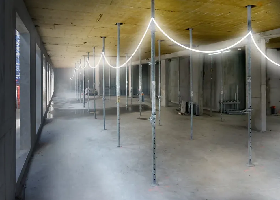 - Ce ruban LED peut être suspendu grâce aux accessoires fournis. Il peut également être enroulé sur des chemins de câbles, des surpentes de faux plafonds ou sur un échafaudage.