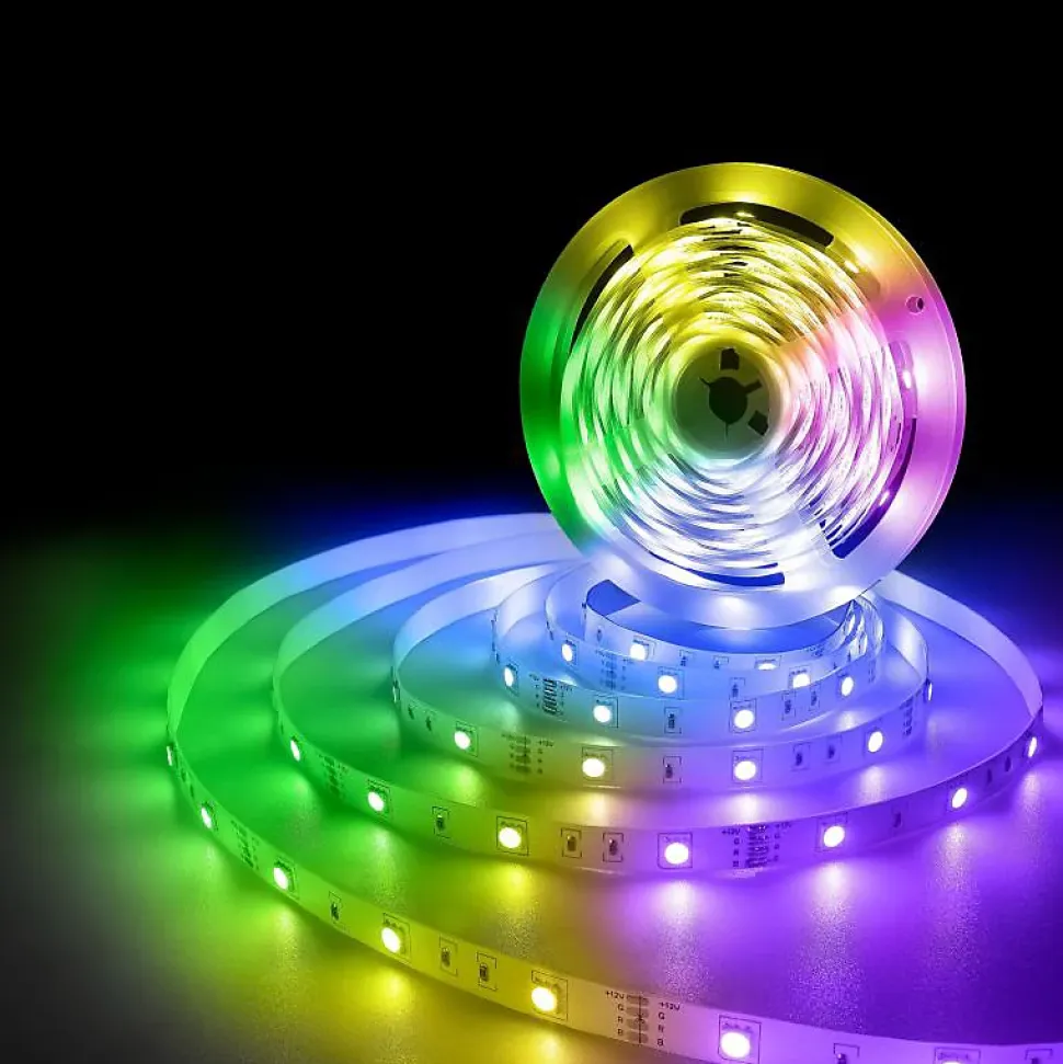Personnalisez votre éclairage avec style grâce au Ruban LED Connecté WiFi RGBW+CCT 2M. Flexible, intelligent et puissant, il s’installe facilement et transforme vos espaces en un clin d’œil grâce à sa connectivité complète et ses multiples effets lumineux.Détails techniques du ruban LED connecté 2M RGBW+CCTTension : 12V – fonctionnement basse tension sécurisé (alimentation non incluse).Type de LED : SMD 5050 RGB et 2835 pour les blancs – combinaison pour une palette complète de couleurs et blancs ajustables.Densité : 90 LED/m – soit 180 LED sur 2 mètres.Indice de protection : IP44 – protégé contre les projections d’eau, idéal pour pièces humides.Angle d’éclairage : 120° – diffusion large et homogène.IRC : Ra ≥ 80 – bon rendu des couleurs.Durée de vie : ~25 000 heures.Certification : CE & RoHS.Puissance : 10W – consommation faible pour un éclairage connecté efficace.Pourquoi choisir ce ruban LED WiFi RGBW+CCT 12V ?Ce ruban LED CCT combine l’élégance d’un éclairage décoratif à la technologie d’un système connecté. Grâce à l’application Tuya Smart, vous pouvez changer les couleurs, varier l’intensité, créer des ambiances lumineuses, programmer des plages horaires ou encore synchroniser le ruban avec votre musique. Sa compatibilité avec les assistants vocaux Alexa et Google Home permet un contrôle à la voix pour plus de confort. Une solution idéale pour créer une atmosphère dynamique et sur-mesure dans votre intérieur.Installation du ruban LED RGBW+CCT 2MFixez le ruban avec l’adhésif double-face 3M intégré ou les supports fournis.Branchez à une alimentation 12V compatible.C