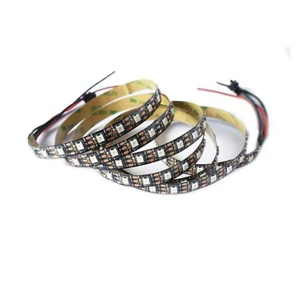 Créez une ambiance lumineuse dynamique avec ce ruban LED digital RGB de 5 mètres. Doté de 300 LED SMD5050, il vous permet de piloter chaque LED individuellement pour générer des effets lumineux uniques et colorés, en intérieur uniquement.Spécifications techniques du ruban LED RGB digital 5V IP20Technologie LED : SMD5050 – 60 LED/m, soit 300 LED sur 5 mètres.Tension : 5V DC – nécessite une alimentation adaptée (non incluse).Puissance : 80W pour un flux lumineux de 6000 lumens.Contrôle : pilotage des effets via contrôleur RGB (non inclus) avec télécommande.Indice de protection : IP20 – usage exclusivement en intérieur sec.Modularité : sécable à chaque LED pour un ajustement précis.Fixation : bande adhésive double-face intégrée pour une pose simple.Les atouts du ruban LED digital RGB 5V IP20Ce ruban LED 5m est la solution parfaite pour personnaliser vos ambiances lumineuses. Grâce à sa technologie digitale RGB, vous pouvez contrôler la couleur de chaque LED individuellement, créant ainsi des animations fluides et variées. Il est idéal pour les projets décoratifs, les gaming rooms, les vitrines de magasin ou les installations événementielles. Léger, fin et autocollant, il se pose facilement sur toute surface plane.Comment installer le ruban LED RGB 5V SMD5050 ?Préparez une surface propre et sèche pour l’installation.Collez le ruban grâce au dos autocollant intégré.Branchez-le à une alimentation 5V (non incluse) via la prise femelle.Connectez le contrôleur RGB (non inclus) pour activer les effets lumineux.Utilisez la télécommande (non incluse) pour gérer couleurs et animations.Où installer ce ruban LE