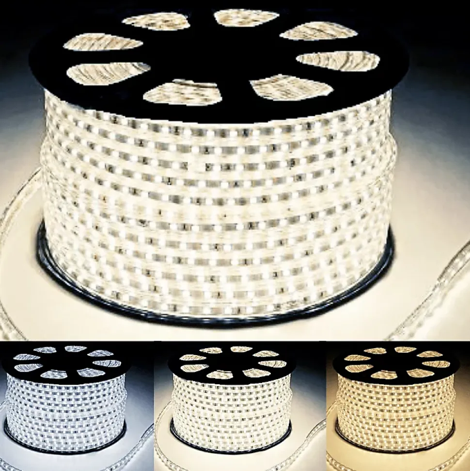 Alliez performance et praticité avec ce ruban LED 220V ultra fin 50 mètres, conçu pour les installations longue distance nécessitant un éclairage puissant, homogène et étanche. Idéal pour un usage intérieur ou extérieur couvert, ce modèle s’adapte aux projets professionnels comme résidentiels.Caractéristiques techniques du ruban LED 2835 50M 220V IP65Longueur : 50 mètres, parfait pour les grandes surfaces.Puissance : 400W (soit 8W/m).Flux lumineux : 32 500 lumens (81 lm/W).Technologie LED : SMD 2835, 120 LED/m.Tension : 220-240V AC, connexion directe au secteur.Angle d’éclairage : 120°, large diffusion lumineuse.Indice de protection : IP65, résistant à l’eau et à la poussière.Indice de rendu des couleurs (IRC) : Ra ≥ 80.Recoupable : tous les 20 cm.Dimensions : 5000 cm x 1,1 cm x 0,55 cm.Dimmable : oui, compatible avec variateur 220V.Durée de vie : ~25 000 heures.Température de fonctionnement : -20°C à +60°C.Certification : CE & RoHS.Garantie : 2 ans.Couleur : blanc.Compatibilité profilé : vérifier que la largeur du profilé accepte 11 mm.Pourquoi opter pour ce ruban LED fin 220V IP65 de 50 mètres ?Ce ruban LED 50m 2835 220V se distingue par sa finesse (11 mm) et sa haute densité lumineuse. Grâce à ses 120 LED par mètre, il diffuse une lumière fluide, continue et puissante. Son indice