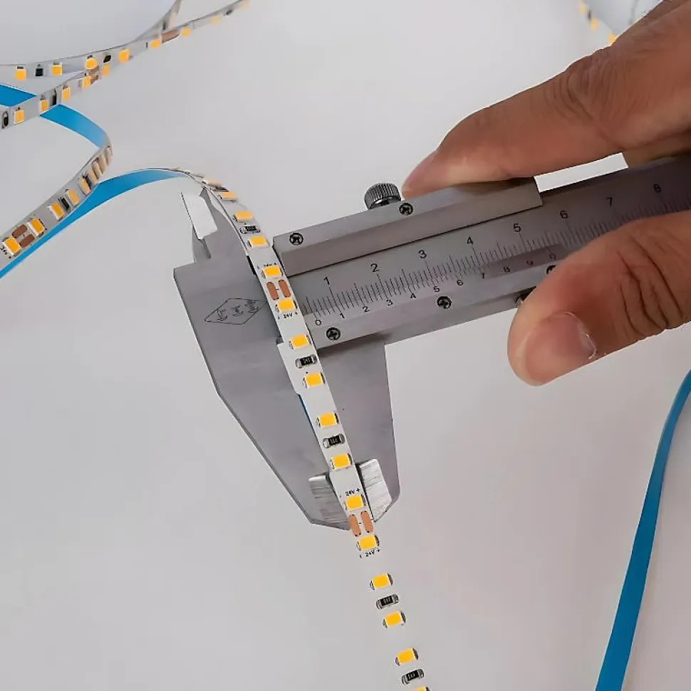 Ultra fin, ultra dense, ultra performant : ce ruban LED 5mm 24V IP20 de 5 mètres offre un éclairage puissant avec une largeur de seulement 5 mm. Idéal pour les installations discrètes ou les projets avec contraintes d’espace.Caractéristiques techniques du ruban LED 5 mètres 210 LED/m 5 mmTechnologie LED : SMD haute densité, 210 LED par mètre.Puissance totale : 40W (soit 8W/m).Luminosité : 7 500 lumens, excellente efficacité lumineuse de 190 lm/W.Tension d’alimentation : 24V DC, pour une meilleure stabilité sur de longues distances.Indice de protection : IP20, usage intérieur exclusivement.Rendu des couleurs (IRC) : Ra90, excellent pour les espaces nécessitant une grande fidélité des couleurs.Angle de diffusion : 120°, pour une lumière homogène.Dimensions : longueur 5 mètres, largeur 5 mm.Recoupable tous les 10 cm : pour un ajustement facile.Dimmable : compatible avec variateurs 24V.Température de fonctionnement : de -25°C à +60°C.Durée de vie : environ 25 000 heures.Certifications : CE & RoHS.Garantie : 2 ans.Pourquoi opter pour ce ruban LED extra fin 24V ?Le ruban LED 24V avec 210 LED/m est conçu pour répondre à des besoins d’éclairage précis dans des espaces étroits ou pour des intégrations invisibles. Grâce à sa largeur réduite de seulement 5 mm, il s’insère facilement dans les profils ultra fins, les mobiliers sur mesure ou les éléments décoratifs minimalistes. Son excellent indice de