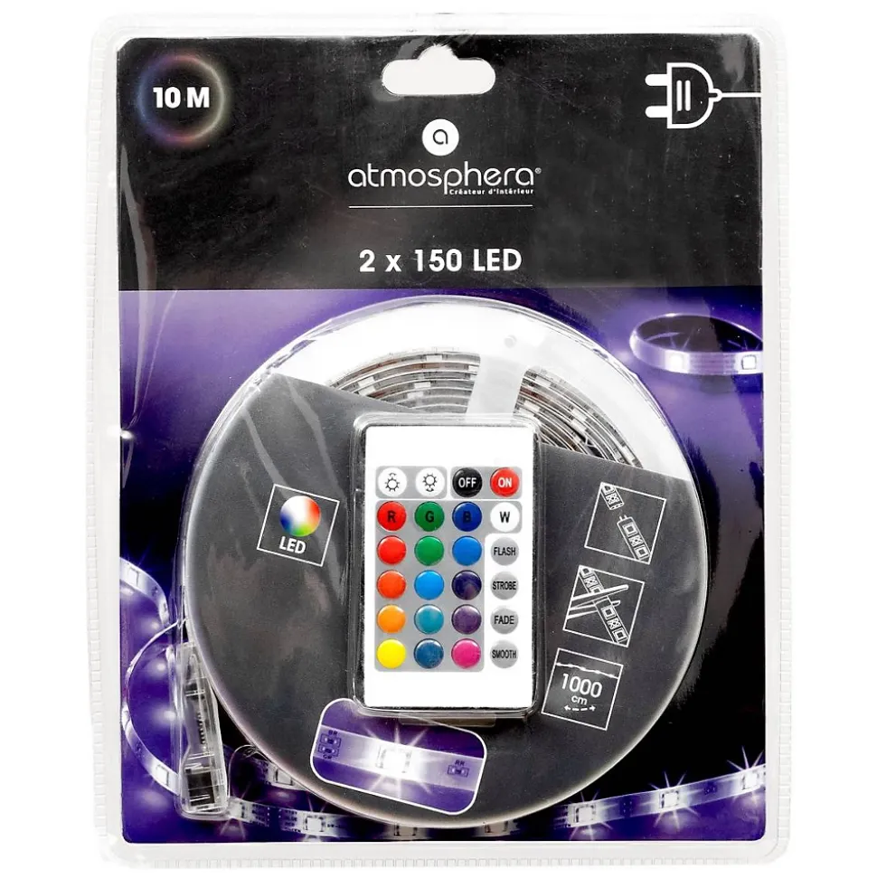 Créez une ambiance lumineuse et festive dans votre intérieur grâce au ruban LED Atmosphera.Pour toutes vos envies de décorationCet accessoire est composé de deux rubans LED de 500cm qui se pluggent ensemble pour obtenir une longueur plus importante. Il est disponible en couleur rouge/vert/bleu. Ces bandes lumineuses peuvent se placer sur une rampe d’escalier, une bibliothèque ou encore sur un meuble TV.Pour un salon dynamique, installez le ruban LED sous des étagères Atmosphera et profitez d’une ambiance tamisée !Le petit plus décoVous pouvez aussi vous servir de ce luminaire original comme d’un éclairage d’appoint pour votre dressing.