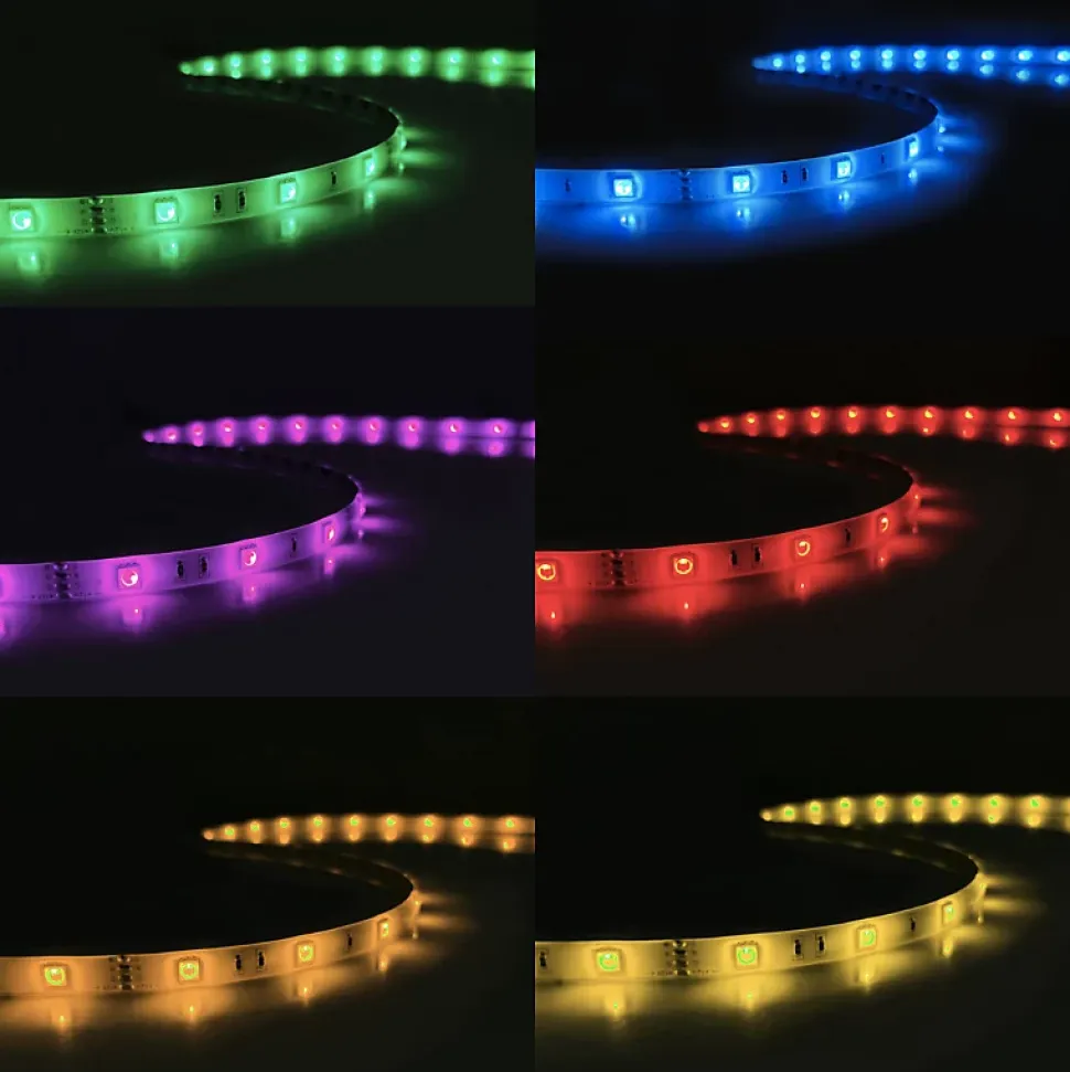 - Optez pour ce joli Ruban LED RGB 12V 5M 5050 IP44 30LED/m à brancher à l’aide d’un transformateur 220V 12V DC et contrôleur RGB, afin d’illuminer votre intérieur efficacement.