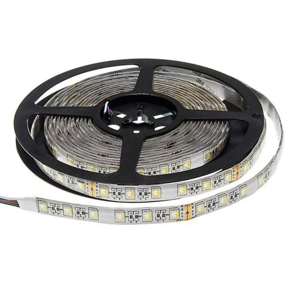 Offrez à vos espaces un éclairage multicolore et fonctionnel avec le ruban LED RGBWH 24V 5 mètres IP54. Ce modèle combine puissance, polyvalence et esthétisme pour s’adapter à tous vos besoins en éclairage d’ambiance ou décoratif.Spécifications techniques du ruban LED RGBWH 5M SMD 5050 24VPuissance totale : 80W (soit 16W/m).Flux lumineux : 8000 lumens (100 lm/W).Technologie LED : SMD 5050, 60 LED par mètre.Type de LED : RGB + blanc chaud + blanc froid (RGBWH).Tension : 24V DC, alimentation basse tension (transformateur non inclus).Angle d’éclairage : 120°, large diffusion.Indice de protection : IP54, résistant aux projections d’eau et à la poussière.Dimmable : oui, via contrôleur et variateur compatibles.Recoupable : tous les 10 cm, installation sur mesure.Dimensions : 500 cm x 1 cm x 0,2 cm.Durée de vie estimée : ~25 000 heures.Certification : CE & RoHS.Garantie : 3 ans.Accessoires non inclus : alimentation 24V, télécommande LED, contrôleur RGBWH (disponibles séparément).Atouts du ruban LED RGBWH IP54 24V : couleurs et efficacitéCe ruban LED 5m RGBWH 24V vous offre un éclairage complet et personnalisable : choisissez parmi des millions de couleurs RGB, ou optez pour un blanc chaud ou froid selon l’ambiance souhaitée. Grâce à ses LED 5050 puissantes, il fournit une lumière intense, avec une excellente efficacité énergétique. Le tout dans un format étanche IP54, adapté aux pièces humides co