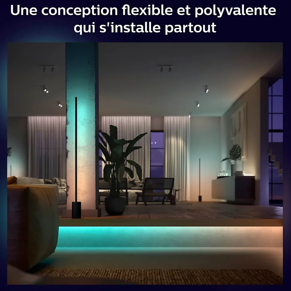 Apportez une touche lumineuse unique à chaque pièce de votre maison avec la bande LED Hue. Grâce à sa couverture transparente, elle est protégée contre la poussière et les dommages, tout en offrant des accents lumineux saisissants. Profitez d’une palette exceptionnelle de 16 millions de couleurs et de nuances de blanc chaud à blanc froid, réglables et dimmables individuellement, pour créer l’ambiance parfaite à chaque moment. Flexible et modulable, cette bande s’adapte à tous vos espaces : sous les meubles, derrière une niche ou autour de votre télévision, vous pouvez la plier, la découper et l’agrandir selon vos envies. Pour une gestion connectée complète, associez-la au pont Hue Bridge (vendu séparément) et contrôlez vos éclairages où que vous soyez. Facile à installer grâce à son adhésif intégré, elle se fixe rapidement sur toutes surfaces planes et solides, avec alimentation et connecteur d’extension inclus pour encore plus de possibilités. Illuminez votre intérieur avec style et simplicité !
