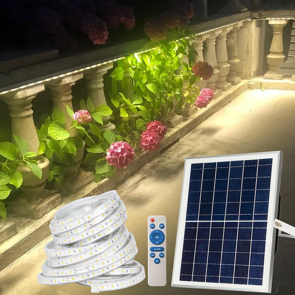 Ce ruban LED est une solution d’éclairage moderne et polyvalente, idéale pour sublimer vos espaces extérieurs grâce à sa lumière chaleureuse de 3000K et son intensité lumineuse de 300 lumens. Avec une longueur totale de 10 mètres et la possibilité de le couper tous les mètres, ce ruban lumineux s’adapte parfaitement à toutes vos configurations, que ce soit pour une terrasse, un balcon, une allée, une pergola ou un jardin.Grâce à son fonctionnement solaire, ce ruban LED est totalement autonome et garantit jusqu’à 12 heures d’éclairage continu après une charge complète. Il est accompagné d’un panneau solaire déporté avec 5 mètres de câble, permettant une exposition optimale au soleil, même si l’installation du ruban lumineux se trouve dans une zone ombragée.Son indice de protection IP65 lui confère une résistance totale aux intempéries, assurant une durabilité exceptionnelle face à l’humidité, la poussière et la pluie. Construit en PVC robuste, il offre une grande souplesse, facilitant son fixage sur différentes surfaces comme un mur, un sol ou un mobilier extérieur.Doté d’une télécommande de contrôle, ce ruban LED permet un pilotage à distance, ajustant l’intensité lumineuse et les modes d’éclairage selon vos besoins. Son éclairage homogène et non éblouissant crée une ambiance élégante et conviviale, parfaite pour les soirées en extérieur, les événements festifs ou simplement pour baliser un chemin en toute sécurité.