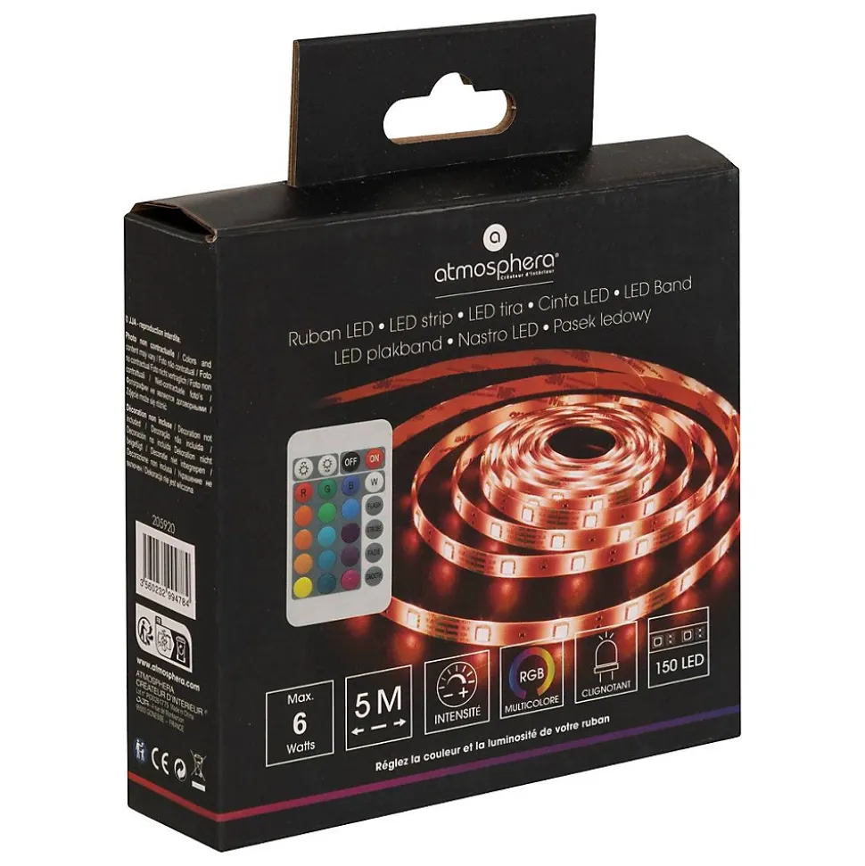 Ruban LED USB avec télécommande 5mContenu : 1 ruban LEDDimensions : L. 500 x P. 1 x H. 0.2 cmMarque : ATMOSPHERA CREATEUR D’INTERIEUR