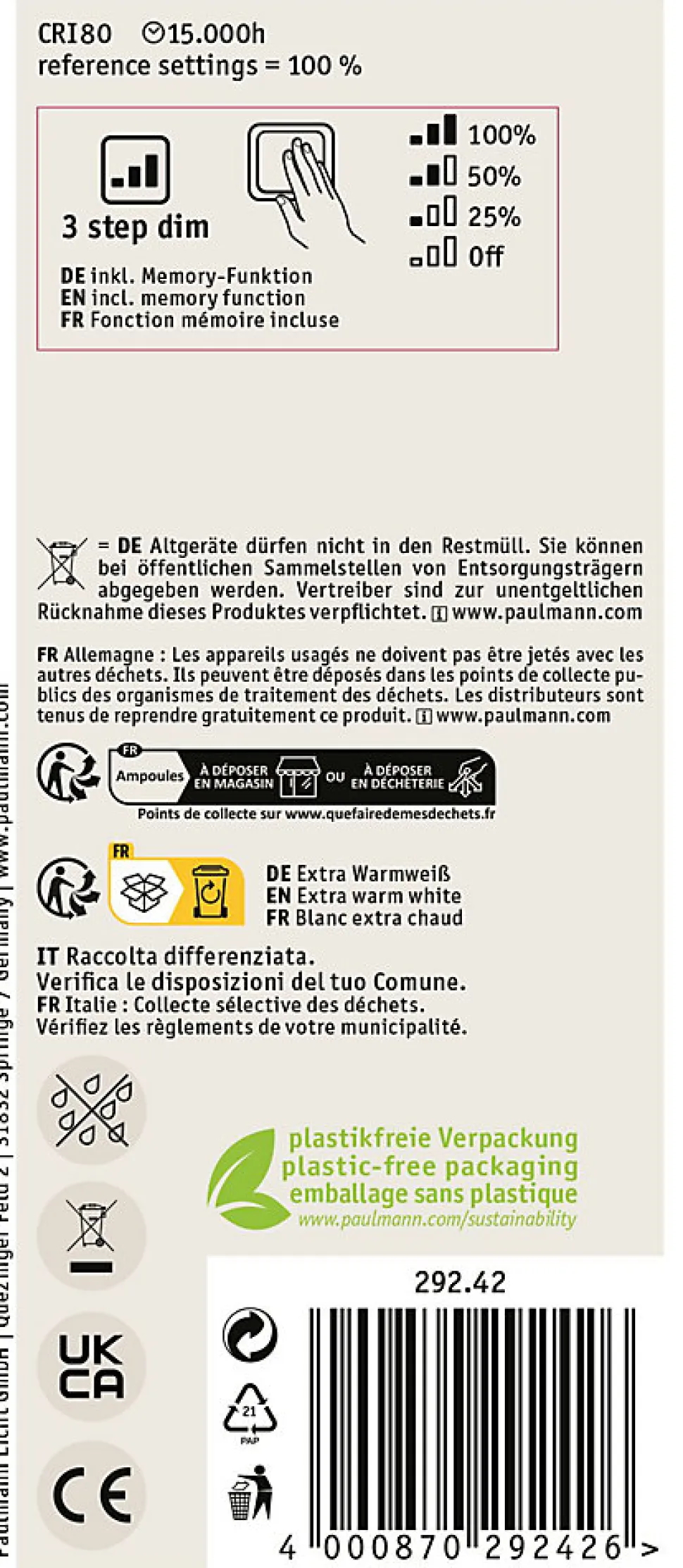 Les ampoules LED décoratives Rustic Shine en verre doré avec 4,2W combinent design nostalgique et technologie de pointe ! Composées de verre plein de haute qualité et de filaments extra-fins de différentes formes, les ampoules cylindriques sont particulièrement esthétiques et attirent l’attention sur les suspensions rétro. Visuellement, les filaments fins rappellent les filaments rustiques des ampoules à incandescence. Elles apportent un charme vintage aux logements modernes et sont très économiques grâce à la technologie LED efficace. Elles sont idéales comme éclairage d’ambiance décoratif pour les lampes à poser, les appliques ou les plafonniers avec des douilles E27 standard. La température de couleur de 1800 K, qui plonge la pièce dans une lumière dorée confortable, assure un éclairage périphérique confortable. L’intensité lumineuse peut être réglée sur trois niveaux à l’aide d’un interrupteur conventionnel, ce qui permet de créer différentes ambiances lumineuses – une lumière tamisée pour les dîners détendus ou une lumière plus claire pour les activités quotidiennes. La fonction mémoire intégrée enregistre le dernier réglage sélectionné jusqu’au prochain allumage pour un confort maximal.