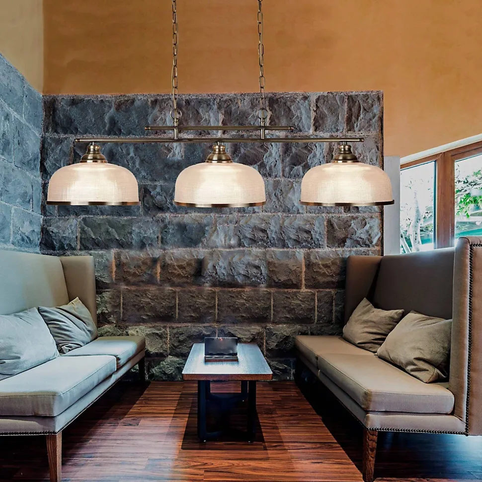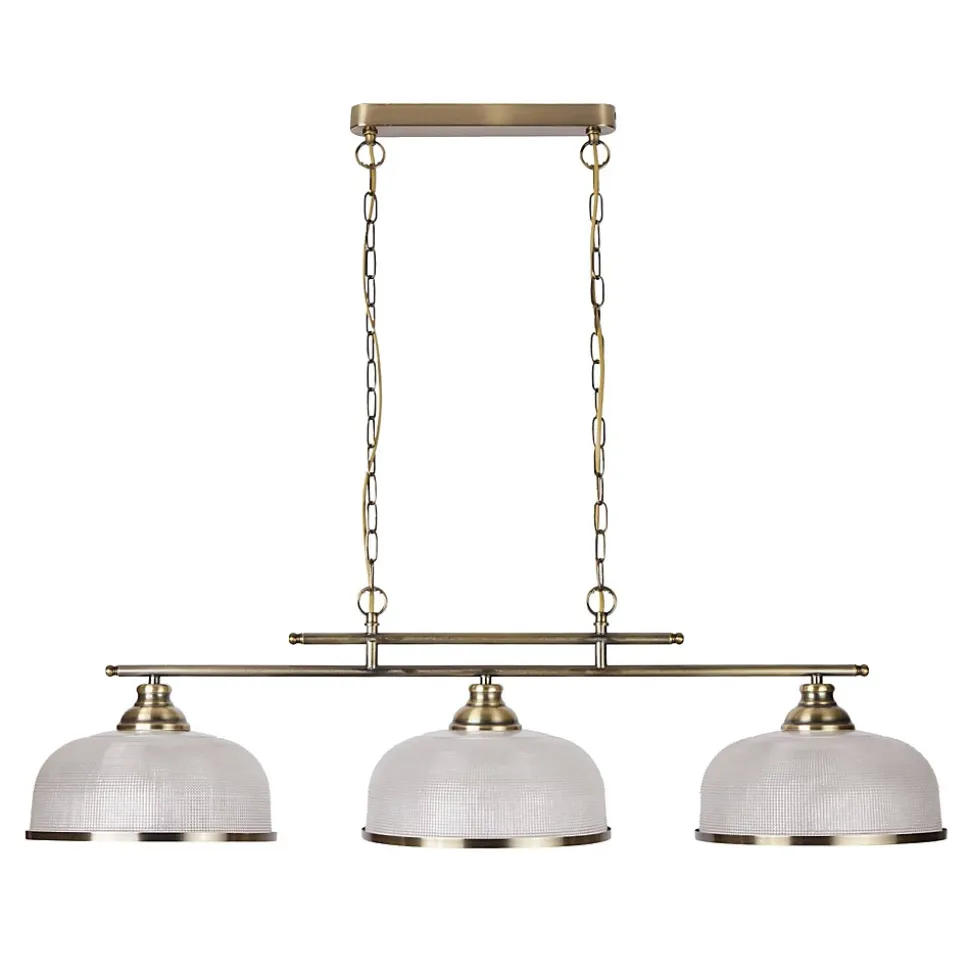 Searchlight Bistro – Suspension à 3 ampoules au plafond, blanc, laiton antique avec abat-jour en verre, E27Fini: blanc, laiton antique | Matériau: verre, métal | Indice de protection IP: IP20 | Hauteur min. (Cm): 27 | Hauteur max (cm): 80 | Longueur (cm): 99 | Largeur (cm): 27 | Type de lampe: E27 LED | Dimmable: Oui