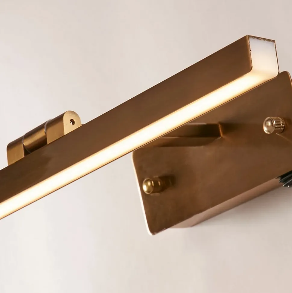 Searchlight Corfu Applique pour Tableau 40cm Laiton Satiné MétalFinition : LaitonMatériau : acier doux et aluminiumIndice IP : IP20Hauteur : 6 cmLargeur : 39 cmProjection : 18 cmType de lampe : LEDNombre de lampes : 1Ampoule incluse : Oui – LED intégréeIntensité variable : nonKelvins : 3 000 KLumens : 372 lmPoids : 0,45 kgPuissance (maximale): 8WCommuté : Oui – interrupteur à bascule