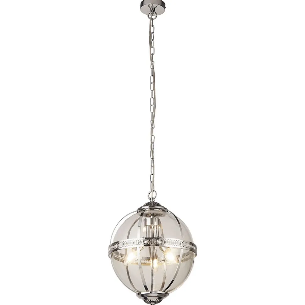 Searchlight Coronet Luminaire suspendu à 3 lumières Chrome, VerreFinition : ChroméMatériau : acier doux et verreIndice IP : IP20Hauteur : 43 cmHauteur maximale : 120 cmLongueur : 32 cmLargeur : 32 cmType de lampe : E14Nombre de lampes : 3Ampoule incluse : nonIntensité variable : oui – Ampoule à intensité variable requisePoids : 4,3 kgPuissance (maximale) : 60 W