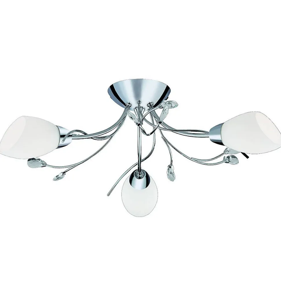 Searchlight Gardenia – Plafonnier semi-affleurant à 3 bras multiples, chrome, cristal et verre opale, E14Finition: Chrome | Indice de protection IP: IP20 | Hauteur (cm): 20 | Diamètre (cm): 60 | Nombre de lumières: 3 | Type de lampe: E14 | Dimmable: Oui | Puissance (max): 40 | Poids (kg): 1,5 | Classe: 1 (mise à la terre) | Ampoule incluse: non