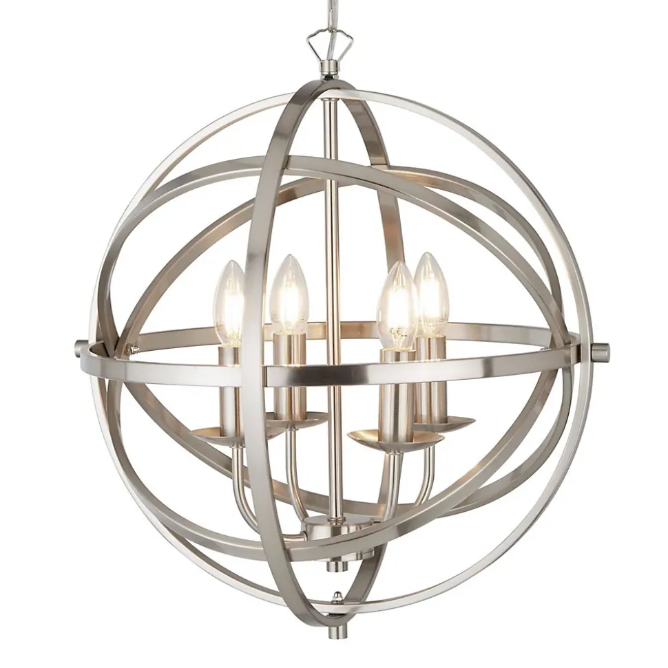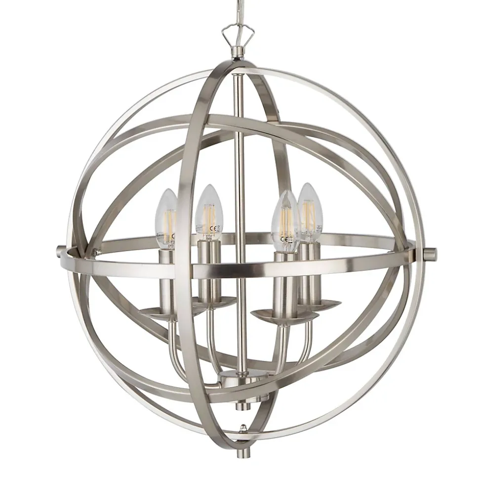 Searchlight Orbit – Luminaire suspendu sphérique à 4 ampoules au fini argent satiné, E14Finition: argent satiné | Matériel: Métal | Indice de protection IP: IP20 | Hauteur (cm): 210 | Hauteur min. (Cm): 50 | Hauteur max (cm): 116 | Diamètre (cm): 45,5 | Nbre de lumières: 4 | Type de lampe: E14 LED | Dimmable: Oui | Puissance (max): 7
