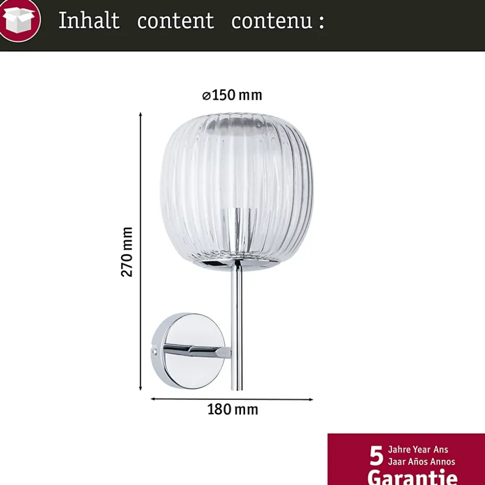 Matériau: Verre / Métal|Protection IP : IP44 – Protection contre les projections d’eau|Ne pas oublier : Commandez l’ampoule adaptée (E14) en même temps !|La gamme Ruya propose différents types de luminaires pour les murs, les plafonds ou les miroirs|Des effets lumineux décoratifs mettent le mur en scène