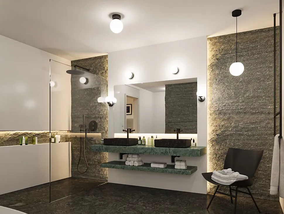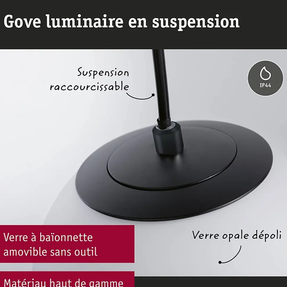 Avec sa forme sphérique intemporelle et élégante, le luminaire en suspension de la série Gove assure une interaction parfaite entre lumière et design dans la salle de bains. Avec sa protection spéciale contre la pénétration de projections d’eau, ce luminaire est idéal pour une utilisation dans les pièces humides. Les luminaires de salle de bains de la série Gove sont synonymes d’élégance et de style, couplées à la technologie LED la plus moderne et la plus économe en énergie. Combinés à d’autres luminaires de la série Gove, ils créent un éclairage harmonieux dans la salle d’eau.