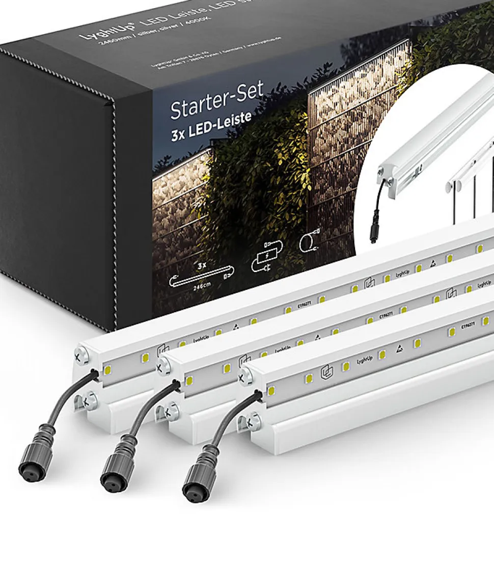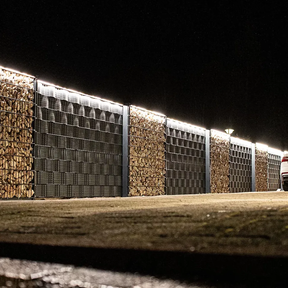 Ajoutez de l’éclairage à votre clôture en métal / gabion avec ce kit LyghtUp Led. Longueur : 2460 m/mTempérature de l’éclairage : Led blanc – chaleureux – 4 000 kVoltage d’entrée : + 24V DCElectricité d’entrée : 0,75 APuissance : 18 WNombre de led : 144Type de led : SMD 2835CRI : 80 RAbarette led étanche IP67Fixation avec visserie et plaquettes de 60 mm en inox fournies.Kit comprenant : 1 tranformateur / 1 prolongateur / 3 barettes LED ArgentMarque : LyghtUP