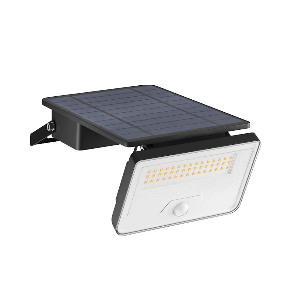 La lampe solaire LED Sky Solar Sensor de Beneito Faure est conçue pour un éclairage extérieur automatique. Équipée d’un détecteur de mouvement PIR et d’un capteur crépusculaire intégrés, elle offre un éclairage intelligent, puissant et économe en énergie, sans raccordement électrique.Avec une puissance de 8W et un flux lumineux de 1600 lumens (efficacité de 200 lm/W), cette lampe diffuse une lumière vive et fonctionnelle de 4000 K avec un angle de faisceau large de 120°. Sa batterie interne de 4000 mAh (remplaçable) offre jusqu’à 12 heures d’autonomie en mode économie (10 %) ou 2 heures en mode pleine puissance (100 %).Le boîtier en polycarbonate blanc mat est résistant aux intempéries (IP54) et aux températures (de -20 °C à +45 °C), ce qui la rend idéale pour une utilisation en extérieur en toutes saisons. Son installation est simple, elle se fixe au mur et fonctionne de manière totalement autonome grâce à son panneau solaire intégré.Puissance : 8 WFlux lumineux : 1600 lmTempérature de couleur : 4000 K – Lumière naturelleAngle de faisceau : 120°Détecteur de mouvement PIR : Portée : 4 à 6 m, angle de faisceau : 120°Capteur crépusculaire intégréAutonomie : Jusqu’à 12 heures (mode éco), 2 heures (mode maximum)Indice de protection : IP54Température de fonctionnement : -20 °C à +45 °CMatériau : PolycarbonateDimensions : 150 x 47 x 213 mmBatterie remplaçablePanneau solaire : 5 VIdéal pour les entrées, les cours, les garages, les terrasses et les allées extérieures, le capteur solaire Sky est une solution d’éclairage extérieur efficace et automatisée, compacte et performante