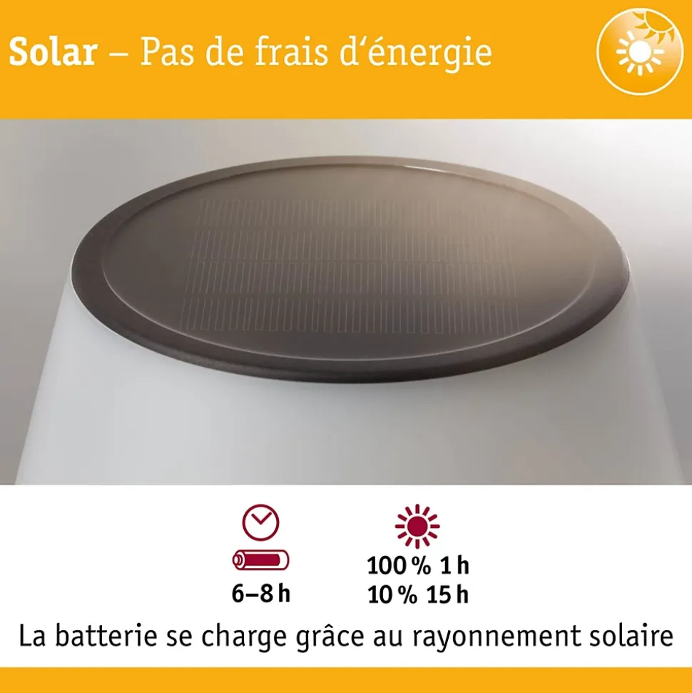 La lampe à poser Outdoor Lillesol fournit un éclairage agréable au jardin ou sur la terrasse. La batterie lithium-ion se recharge pendant la journée à la lumière du soleil et ne requiert donc pas la présence d’une prise à proximité. Trois intensités de lumière peuvent être sélectionnées.
