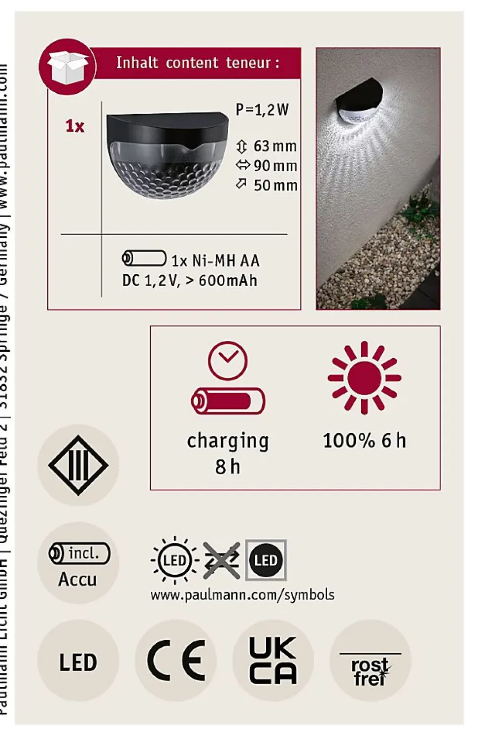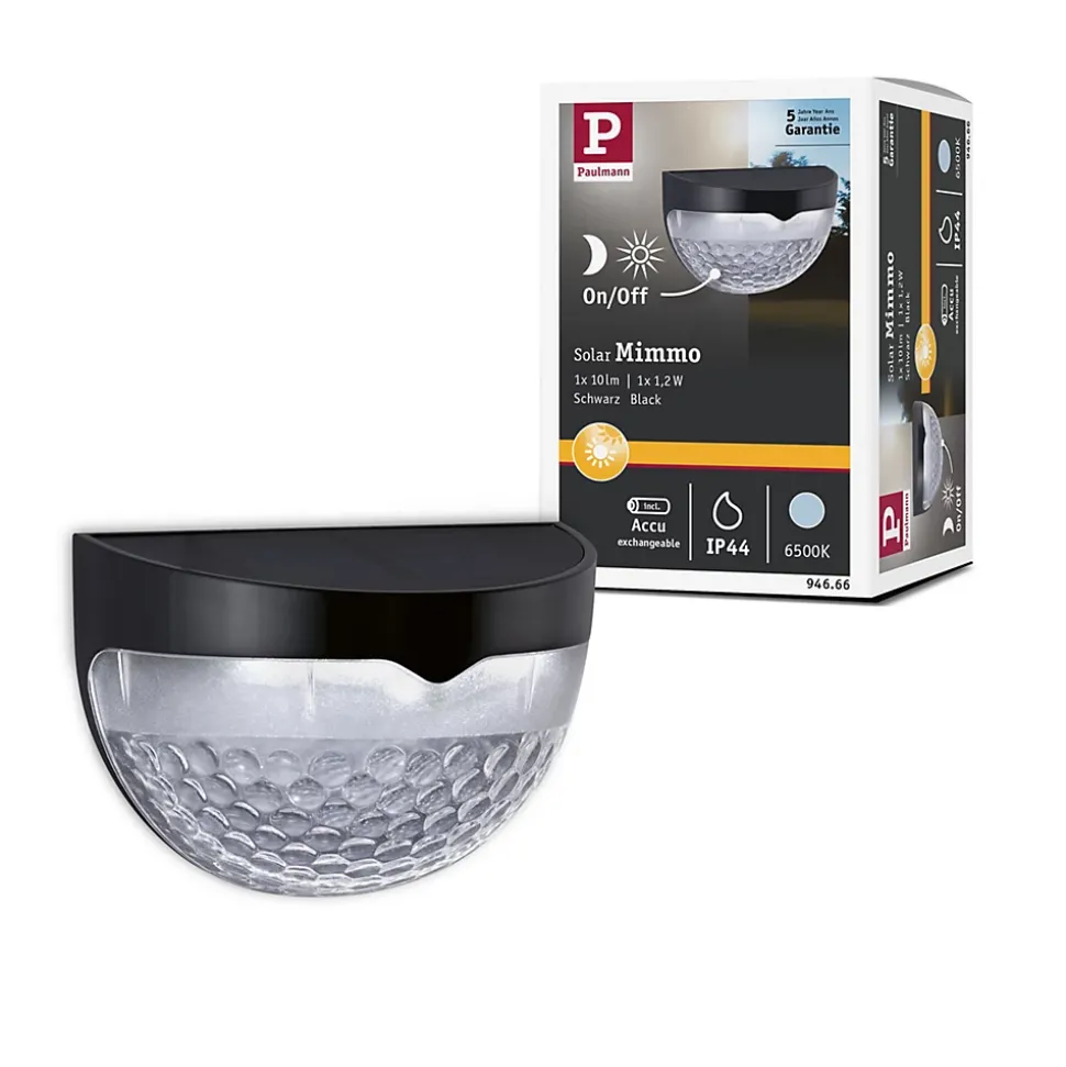Le luminaire d’allée solaire Mimmo au ton blanc lumière du jour disponible en ${Nennlichtstrom_N éclaire les chemins sans aucun raccordement électrique. Il contribue à une meilleure sécurité dans l’obscurité et peut être placé librement grâce à sa technologie solaire pratique. En effet, sa batterie se recharge sous les rayons du soleil durant la journée et l’énergie emmagasinée fait fonctionner l’ampoule la nuit.
