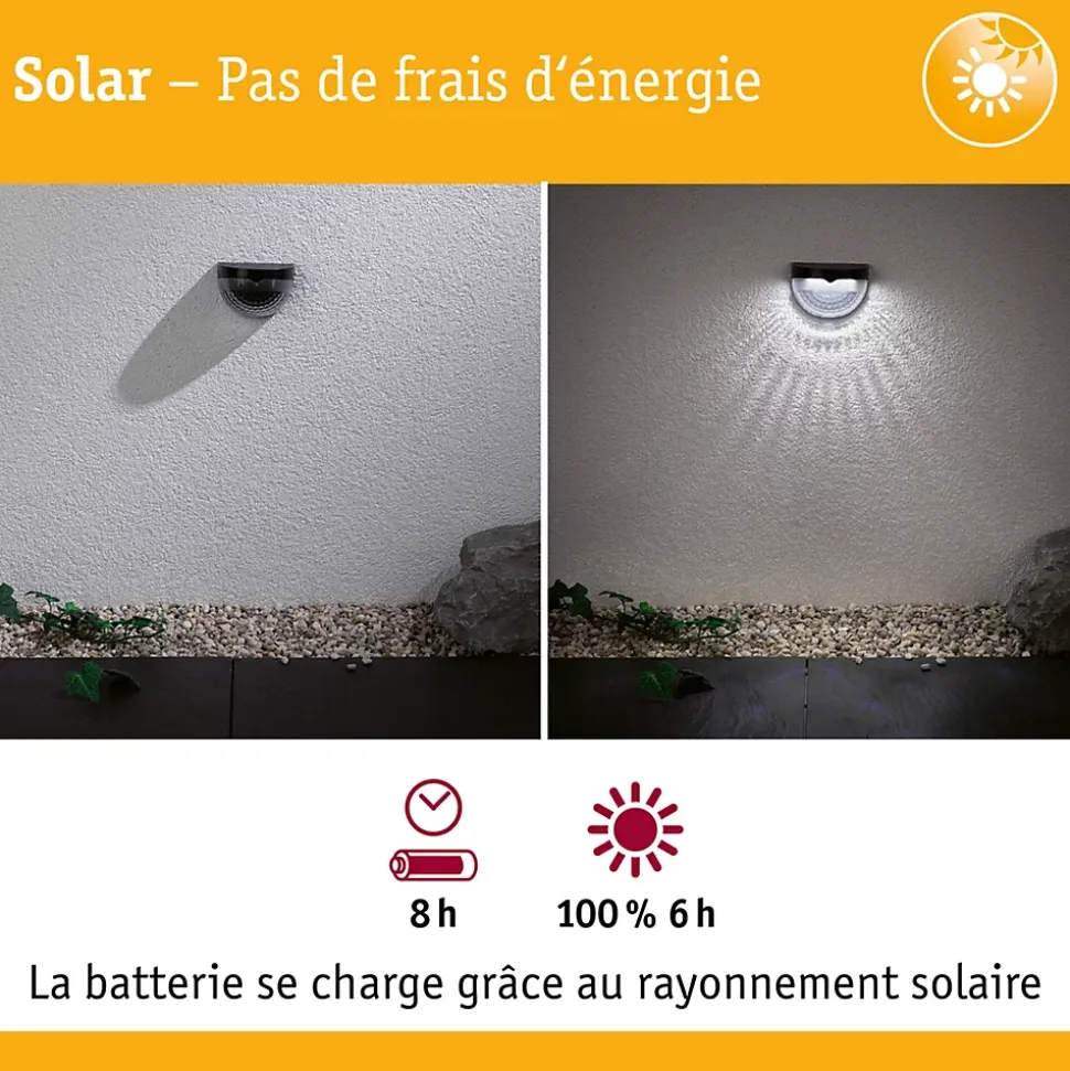 Luminaire à énergie solaire sans câble d’alimentation|Température de couleur: 6500K – Lumière du jour|IP44 – Protection contre les projections d’eau, y compris en extérieur|Autonomie d’au jusqu’à 6 heures
