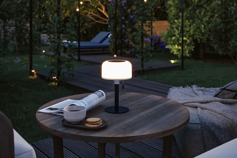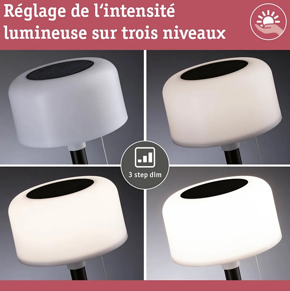 Rechargeable par panneau solaire intégré ou raccordement USB-C|Température de couleur: 2700K – Blanc chaud|Intégration parfaite dans l’environnement grâce à la dimension compacte et le coloris intemporel du boîtier|le type de protection: IP44 – convient pour locaux humides ou extérieur