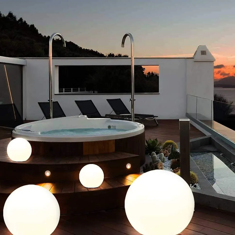 Boule lumineuse LED à énergie solaire : s’allume et s’éteint toute seule. Il suffit de la laisser dans le jardin : elle s’allume automatiquement dans l’obscurité et s’éteint pour se recharger pendant la journée. Il suffit de le laisser dans un endroit ensoleillé. Munie de LED RGB, vous aurez le choix entre une lumière blanche chaude 3000 K (idéale pour l’extérieur) et 7 autres couleurs pour divertir vos invités. Choix via la télécommande fournie (rouge, vert, bleu, jaune, violet, cyan, rose). 30 lumens. Vous pouvez l’utiliser à l’extérieur (IP66) ou à l’intérieur. Autonomie jusqu’à 6 heures (avec charge solaire complète). Aucune installation particulière n’est nécessaire. Sans fil. Design simple et épuré, adapté aussi bien au style de vie moderne que classique : la boule blanche de 30 cm est un classique du design de l’éclairage. Construction solide et robuste. Utilisation polyvalente, par exemple dans le jardin, sur la terrasse, dans le jardin d’hiver, dans la zone de jour, dans les foires et les expositions, dans la vitrine et plus encore. Peut être installé en tant qu’appareil unique ou en groupe.