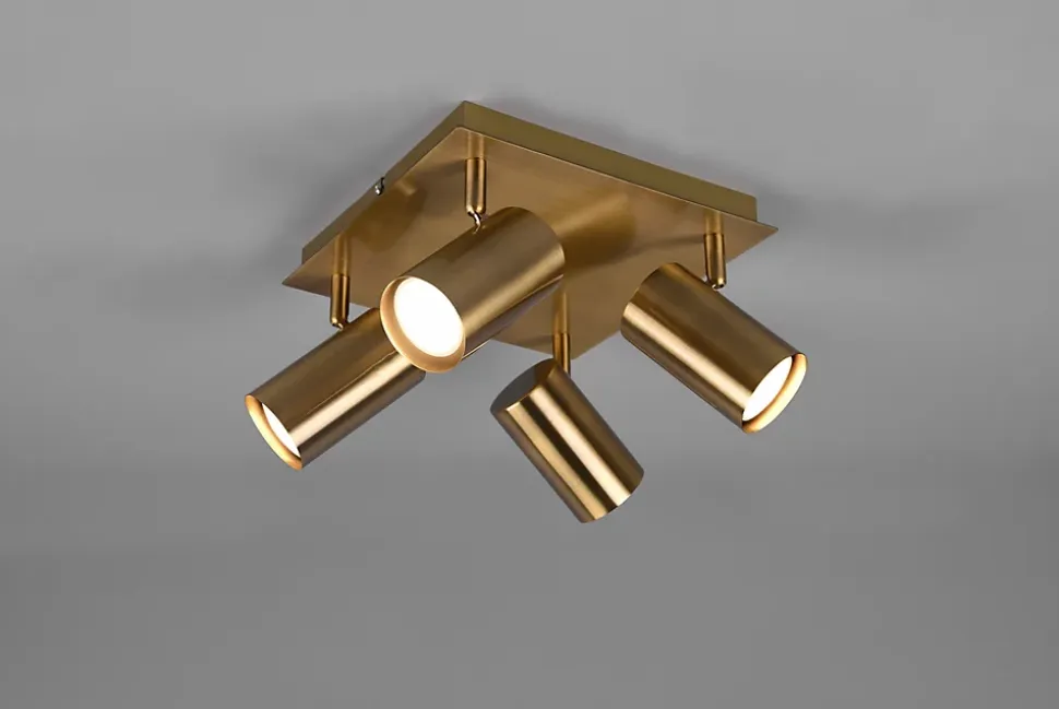 Les caractéristiques techniquesLe spot Marley de Trio 4 lampes propose une solution d’éclairage pratique, discrète et modulable grâce à ses têtes orientables à 360°.Conçu en métal finition laiton fumé, ce luminaire allie durabilité et esthétique épurée pour s’intégrer avec élégance à tout style d’intérieur.Il fonctionne avec 4 ampoules GU10 (non fournies), pour une puissance maximale de 35 watts par source.Design minimaliste et efficaceGrâce à son design sobre et moderne, ce spot s’adapte aussi bien à une cuisine contemporaine, qu’à une entrée ou un salon design.Ses têtes orientables permettent de diriger la lumière selon vos besoins, que ce soit pour créer des ambiances ou mettre en valeur des zones précises.Économie d’énergie et performanceNous vous recommandons l’usage d’ampoules LED GU10, qui garantissent une économie d’énergie jusqu’à 80 % par rapport aux lampes halogènes traditionnelles.Les LED assurent également une durée de vie prolongée et une faible émission de chaleur, tout en étant plus respectueuses de l’environnement.