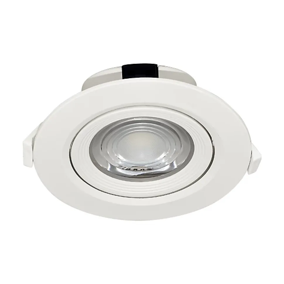 Le spot COB LED encastrable rond blanc orientable 10W IP20 3000K produit un éclairage nettement plus performant que celui des technologies LED traditionnelles. C’est pour cela qu’il convient parfaitement pour l’éclairage général de la maison (sauf salle de bain). Mais aussi les locaux commerciaux comme les restaurants, hôtels, boutiques, etc.. L’efficacité énergétique du spot COB LED encastrable rond blanc et sa longue durée de vie, permettent plus de 80% d’économie d’énergie, par rapport aux éclairages traditionnels incandescents ou halogènes. Son indice de rendu des couleurs (IRC) est élevé Ra⩾80. De plus il n’émet pas de radiation UV ni infrarouge. Sa température de couleur blanc chaud de 3000K, favorise l’ambiance conviviale et cosy, propice à la détente. Sa puissance de 10W avec 800lm équivaut à la puissance d’une ampoule incandescente de plus de 80W. Ce spot est orientable et cible facilement les sujets avec un angle de diffusion est de 45°, considéré comme moyen. Concernant la matière, il est en polycarbonate (PC), qui est un thermoplastique connu pour ses propriétés mécaniques excellentes entre -80° et + 135 °C. Le produit est donc recyclable. Avec une durée de vie de 20000hrs, ce produit est durable et économique. Ses dimensions sont les suivantes, hauteur 50mm, diamètre 120mm et diamètre de découpe 92mm. Hauteur : 50mm Diamètre : 120mm Diamètre découpe : 92mm Puissance : 10W Kelvin : 3000K Lumens : 800lm Indice de protection : IP20 Grâce à son rendement énergétique élevé, ce spot possède une classe énergétique A++ à A. Produit conforme à la norme CE, à la directive RoHS et DEEE.