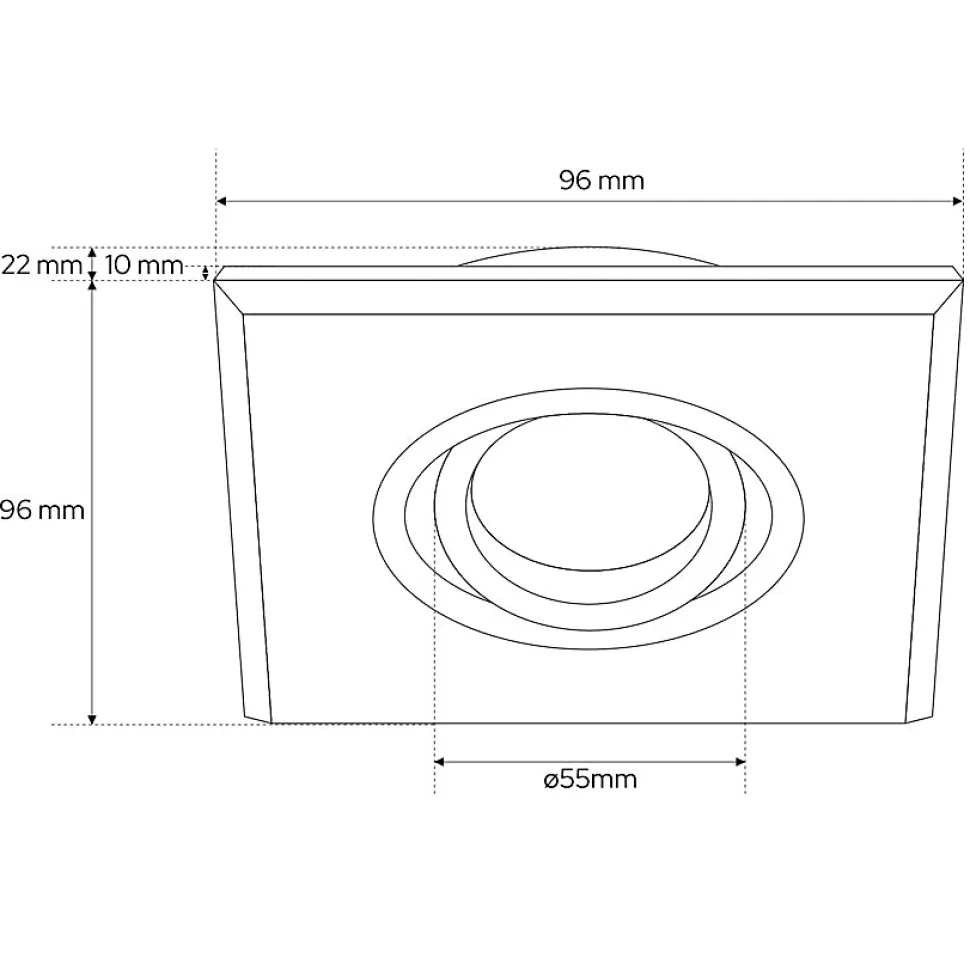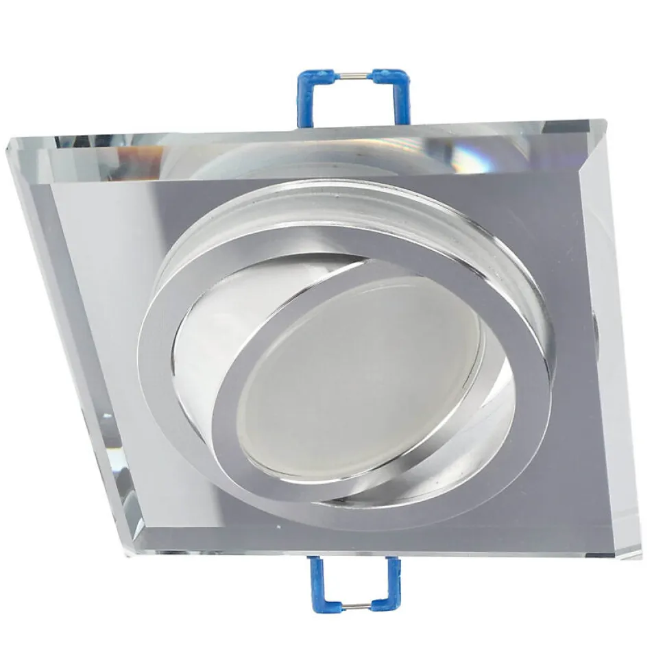 Spot encastrable au plafond CRYSTAL R Argent IP20. Carré argenté moderne — spot halogène encastré. Solution encastrée fonctionnelle. Adapté aux aménagements contemporains du couloir à la cuisine comme à la chambre.Données généralesApplication : intérieurType de montage : encastréEmplacement d’installation : plafondCouleur : argentéFinition : effet miroir bague brillanteMatériau : verre trempé aluminiumDimensions [mm] :- largeur : 96 mm- longueur : 96 mm- diamètre de l’anneau : Ø55 mm- hauteur : 10 mm- hauteur totale : 24 mm- ouverture de montage : 70–80 mmOrientable : ouiVolet : -Douille incluse : nonType de douille : GU10 / Gx5.3Nombre de douilles : 1Source lumineuse incluse : nonDonnées techniquesPuissance maximale [W] : 35 WTension nominale [V] : 220–240 V AC / 12 V DCFréquence nominale [Hz] : 50–60 HzIP : IP20Classe de protection : II / III