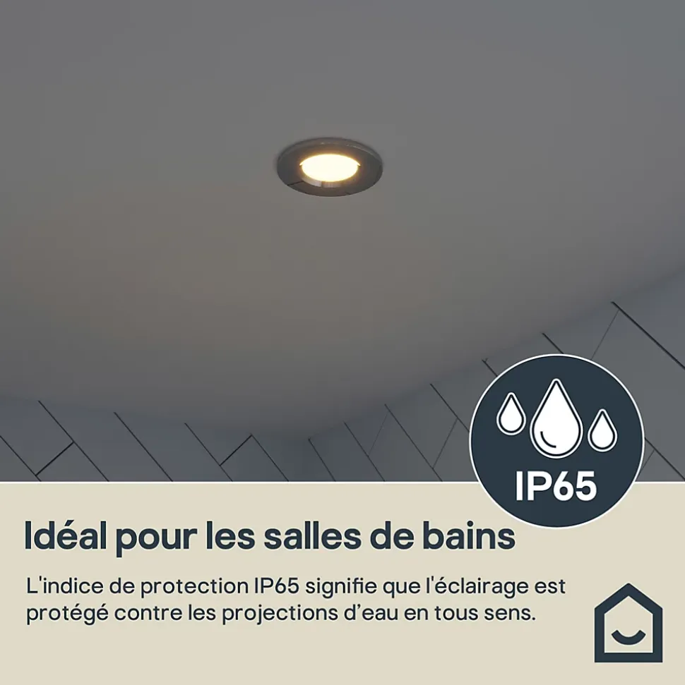Spot encastrable Etana LED intégrée blanc chaud IP65 410lm 4.7W Ø8.5cmxH.3.1cm métal chrome GoodHome