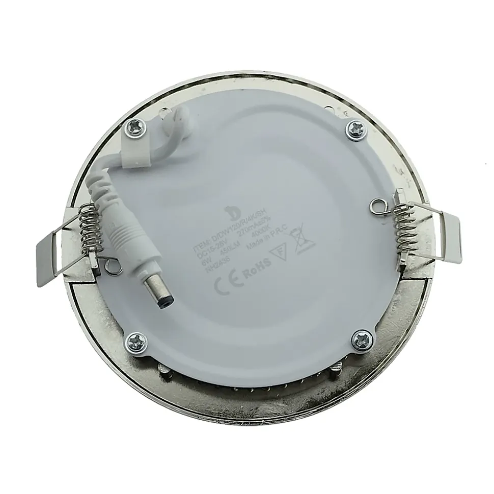 Température de couleur : Blanc Neutre 4000KPuissance consommée : 6WFlux lumineux : 450 LumensDimmable (compatible variateur) : NonDiamètre du spot : ø120*13mmDiamètre de perçage : ø105mmCouleur du produit (y compris le cadre) : InoxIndice de protection : IP 20Garantie fabricant : 2 ans