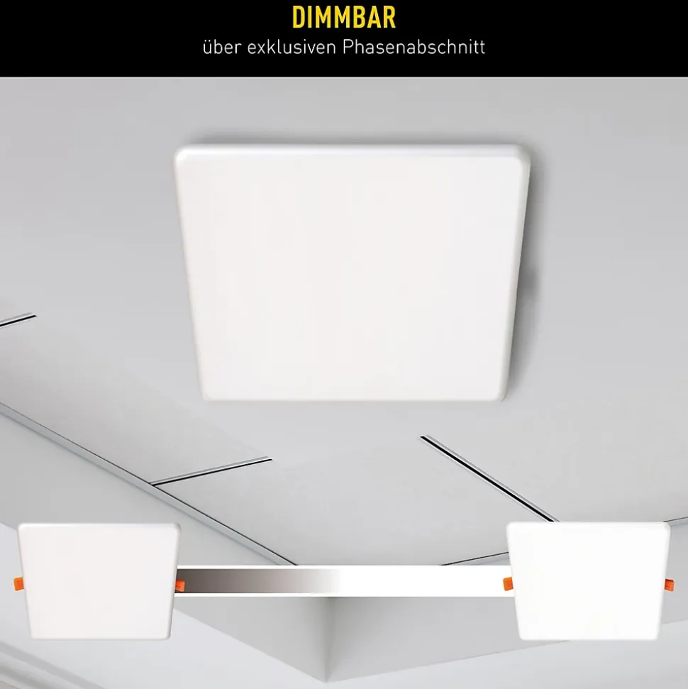 Le luminaire encastré SUMA est un véritable bijou pour chaque pièce à vivre. Les luminaires encastrés s’adaptent harmonieusement aux styles d’aménagement les plus divers et assurent un éclairage discret mais efficace. Ce luminaire de style moderne séduit par son aspect sobre et sa forme carrée – idéal pour tous ceux qui aiment les objets particuliers. Le luminaire est fabriqué en métal et en plastique et est de couleur blanche. La surface de l’abat-jour est mate. Le luminaire encastrable mesure 21,5 cm de long, 21,5 cm de large/profondeur et 3,2 cm de haut. Le luminaire a donc un diamètre de 21,5 cm. Avec ce luminaire encastrable, équipé de 132 LED sur 1 carte LED, vous apportez de la lumière dans l’obscurité. Si nécessaire, la lampe peut être remplacée par un spécialiste. Ce luminaire est conforme à la classe 2 et à l’indice de protection IP44. Pour le fonctionnement sur secteur de cet appareil, une tension secteur de 220-240 V ~ 50 Hz est nécessaire. Le luminaire de 21 watts a une intensité lumineuse de 1900 lumens et une température de couleur de 3000 kelvins. Grâce à sa fonction de variation d’intensité, la luminosité peut être adaptée aux besoins de chacun. Avec notre luminaire encastrable exclusif, vous créez la lumière parfaite pour chaque ambiance et apportez une touche de luxe et d’élégance à votre intérieur.