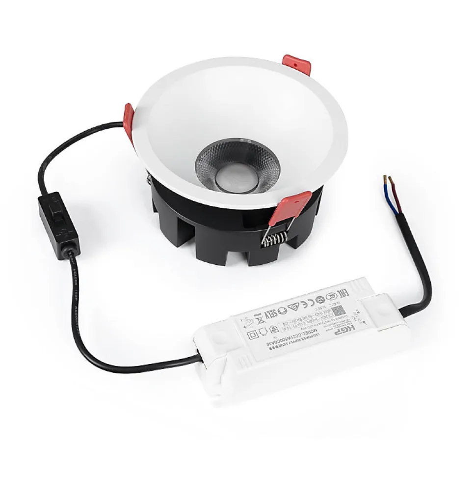 Spot Downlight LED 20W CCT 2700K-4000K-6500K Orientable Circulaire ArgentDécoupe Ø110-115 mm | Angle de faisceau 36° | Puces OSRAM et Driver KGPOptimisez l’éclairage de vos espaces avec ce spot LED encastrable de haute qualité, conçu pour offrir performance, efficacité et polyvalence.Caractéristiques principales :Système CCT réglable : Choisissez entre trois températures de couleur – blanc chaud (2700K), blanc neutre (4000K) et blanc froid (6500K) – pour adapter l’éclairage à vos besoins.Qualité lumineuse supérieure : Avec un CRI>80, il garantit une restitution fidèle et naturelle des couleurs, idéal pour tout type d’environnement.Angle de faisceau de 36° : Fournit un éclairage ciblé pour mettre en valeur des zones spécifiques avec précision.Design orientable : Permet d’ajuster la direction du faisceau lumineux, augmentant la fonctionnalité et la flexibilité.Confort visuel : Faible indice d’éblouissement (UGR bas) pour un éclairage agréable, sans gêne.Matériaux durables : Fabriqué en aluminium et polycarbonate de haute qualité avec une finition argentée, il allie esthétique moderne et longévité.Installation facile : Nécessite une découpe de Ø110-115 mm dans le plafond. Son diamètre extérieur est de Ø123 mm pour une installation propre et professionnelle.Composants haut de gamme : Équipé de puces OSRAM haute performance et d’un driver KGP pour une efficacité et une stabilité optimales.Également disponible en blanc et en noir, ce spot downlight LED est parfait pour les habitations, bureaux, commerces et tous les espaces nécessitant un éclairage fonctionnel et de qualité.