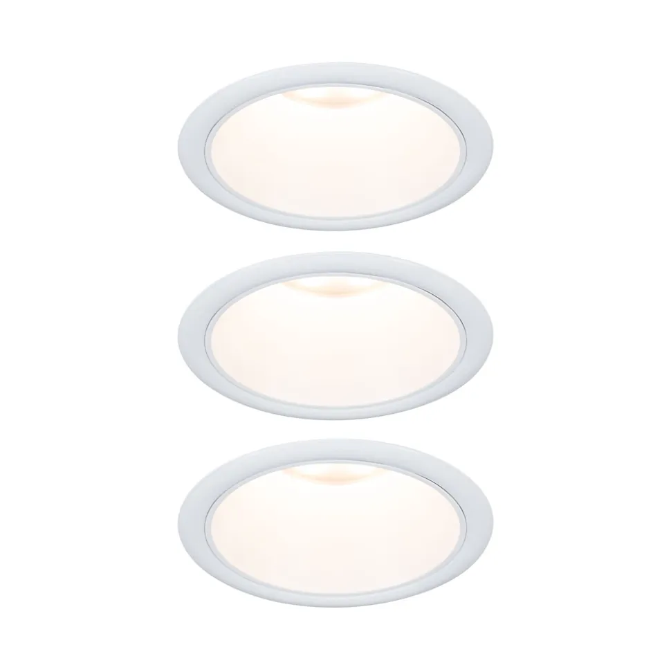Coup de foudre clairvoyant ! Avec leurs ampoules en retrait, les spots encastrés Cole en blanc se fondent presque dans le plafond. Mais sitôt repérés, impossible de s’en détourner. La lumière des Coin en retrait sur la surface blanche dépolie garantit un éclairage doux et non éblouissant. De plus, ils convainquent par leur technologie brillante : Les LED Coin remplaçables diffusent une agréable lumière blanc chaud et se règlent sur trois niveaux avec un interrupteur conventionnel.