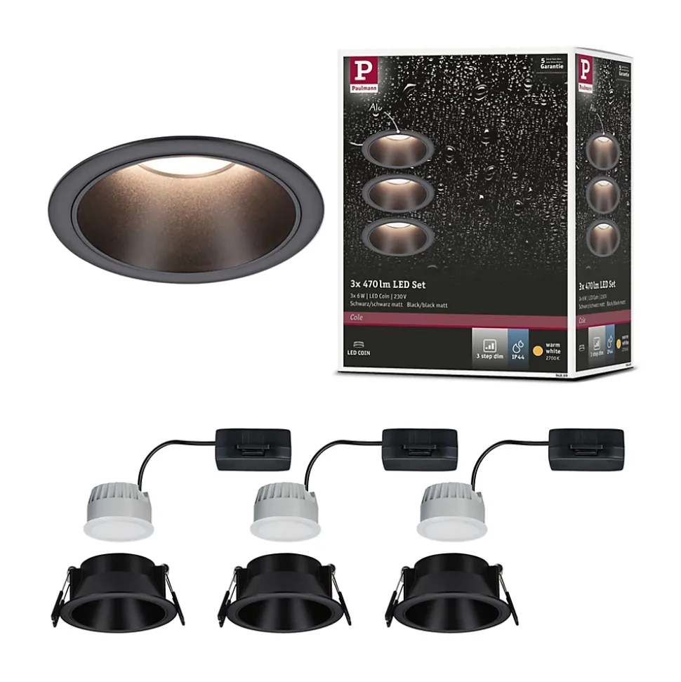 Coup de foudre clairvoyant ! Avec leurs ampoules en retrait, les spots encastrés Cole en noir se fondent presque dans le plafond. Mais sitôt repérés, impossible de s’en détourner. La lumière des Coin en retrait sur la surface noire dépolie garantit un éclairage doux et non éblouissant. De plus, ils convainquent par leur technologie brillante : Les LED Coin remplaçables diffusent une agréable lumière blanc chaud et se règlent sur trois niveaux avec un interrupteur conventionnel.