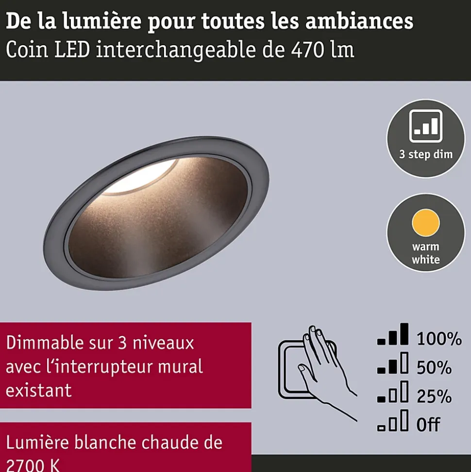 - Réglable sur 3 niveaux avec un interrupteur ordinaire.