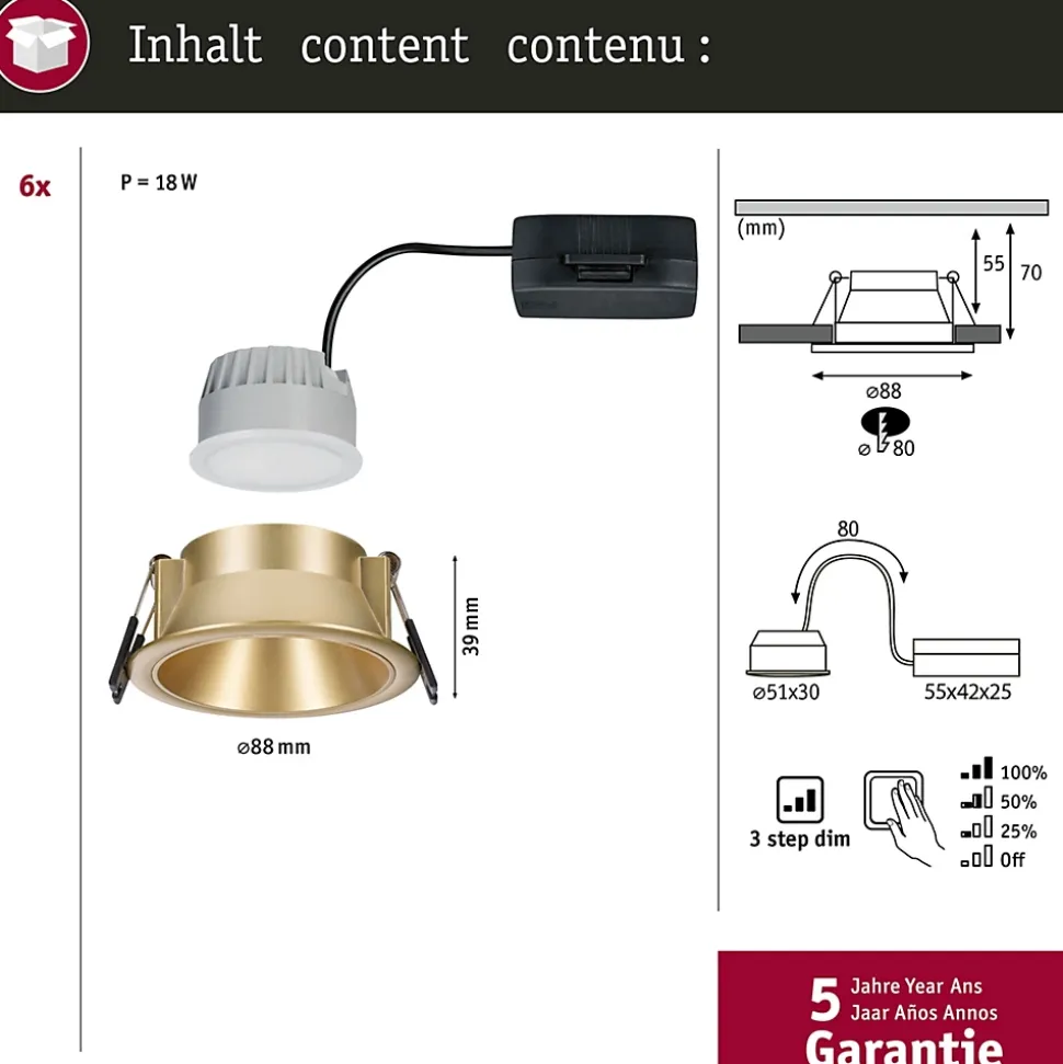 Coup de foudre clairvoyant ! Avec leurs ampoules en retrait, les spots encastrés Cole en Doré mat vendus par lots de 6 se fondent presque dans le plafond. Mais sitôt repérés, impossible de s’en détourner. La lumière des Coin en retrait garantit un éclairage doux et non éblouissant. De plus, ils convainquent par leur technologie brillante : Les LED Coin remplaçables diffusent une agréable lumière blanc chaud et se règlent sur trois niveaux avec un interrupteur conventionnel.