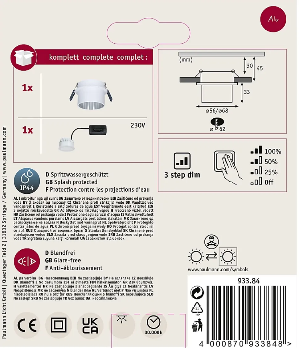 Un simple commutateur permet de faire varier la luminosité sur 3 niveaux|Ampoule LED amovible incluse|Température de couleur: 2700K – Blanc chaud|Pour raccordement direct au secteur 230V