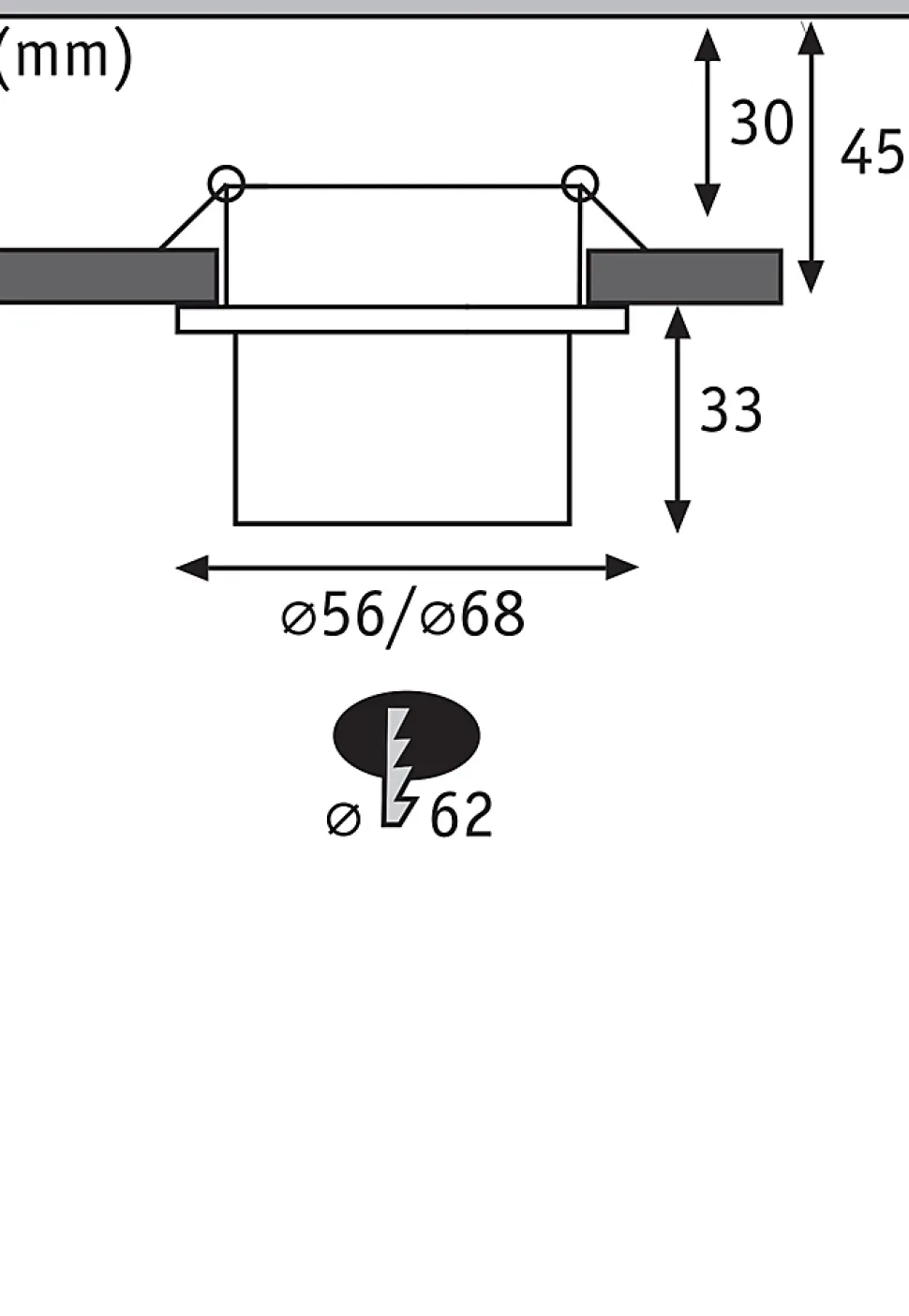 - Compact et peu profond – diamètre de perçage 62 mm, profondeur d’encastrement 45 mm.