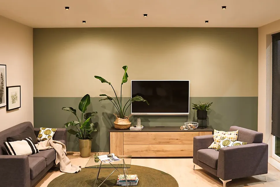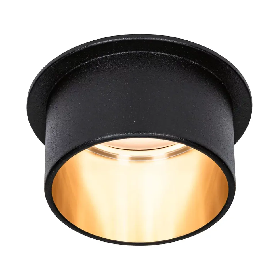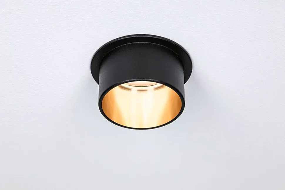 L’encastré décoratif Gil dans la couleur Noir mat#Doré au design bicolore assure un éclairage esthétique et apporte des accents non éblouissants au plafond. Grâce au cylindre décoratif proéminent, une faible profondeur d’encastrement est nécessaire par comparaison avec des points de lumière en retrait. Mais si tôt remarqués, ils aimantent le regard. Les projecteurs convainquent avec une technique brillante : les LED Coin remplaçables diffusent une agréable lumière blanc chaud. Ils se règlent sur trois niveaux avec un interrupteur conventionnel et sont combinables sans restriction. Ils requièrent un diamètre de perçage de 62 mm.