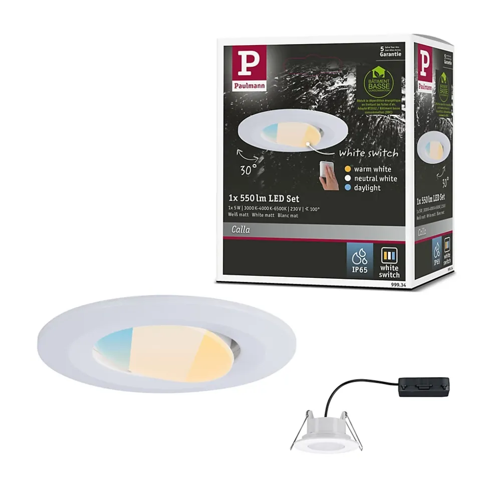 Les luminaires Calla 1x5W de couleur Blanc dépoli, sont des spots encastrés anti-éblouissement en Matière plastique, qui conviennent aussi bien à l’équipement de nouvelles installations qu’au remplacement d’équipements existants. Ces luminaires se relient facilement et de manière illimitée entre eux grâce à la connexion directe 230V. La livraison inclut des ampoules White Switch qui permettent le réglage de la température de couleur sur trois niveaux par l’actionnement répété de l’interrupteur mural.