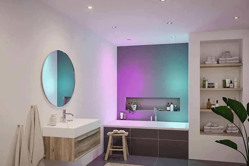 Kit composé de 3 luminaires fourni avec module LED|protection ip : ip 44 – protection contre des projections d’eau|Tunable White offre un choix infini, de lumière dorée (2200 K) à blanc lumière du jour (6500 K)|Changement de couleur multicolore RGBW|La fonction de mémoire enregistre le dernier niveau utilisé jusqu’à la prochaine mise en marche.|S’intègre parfaitement aux infrastructures Zigbee Smart Home existantes.|Possibilité de continuer à allumer et éteindre via l’interrupteur d’éclairage|Profondeur d’encastrement réduite (45 mm)|Raccordement direct au 230 V grâce aux Coins connectables