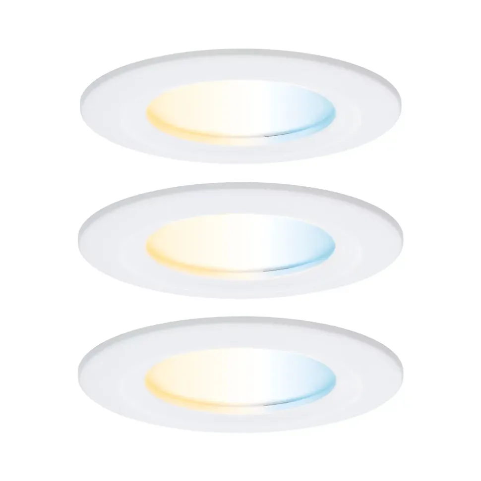 Kit composé de 3 luminaires fourni avec module LED|protection ip : ip 44 – protection contre des projections d’eau|Tunable White offre un choix infini, de lumière dorée (2200 K) à blanc lumière du jour (6500 K)|La fonction de mémoire enregistre le dernier niveau utilisé jusqu’à la prochaine mise en marche.|S’intègre parfaitement aux infrastructures Zigbee Smart Home existantes.|Possibilité de continuer à allumer et éteindre via l’interrupteur d’éclairage|Profondeur d’encastrement réduite (45 mm)|Raccordement direct au 230 V grâce aux Coins connectables