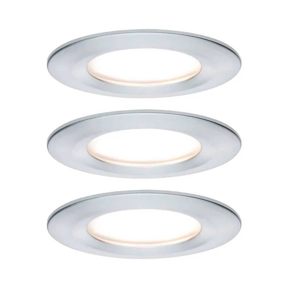 Les spots encastrés Nova ronds (kit de 3) en Alu tourné avec LED-Coin remplaçable conviennent aussi bien à l’équipement de nouvelles installations qu’au remplacement d’équipements existants. De forme particulièrement plate, ils s’intègrent dans les plafonds disposant d’un espace creux de 30 mm seulement. Grâce à un raccordement sans outils par clips de fixation rapides, les luminaires individuels sont simples et rapides à monter. Avec leur protection anti-projections d’eau IP44, ces luminaires garantissent une lumière blanc chaud chaleureuse tant dans la salle de bain que dans la cuisine.