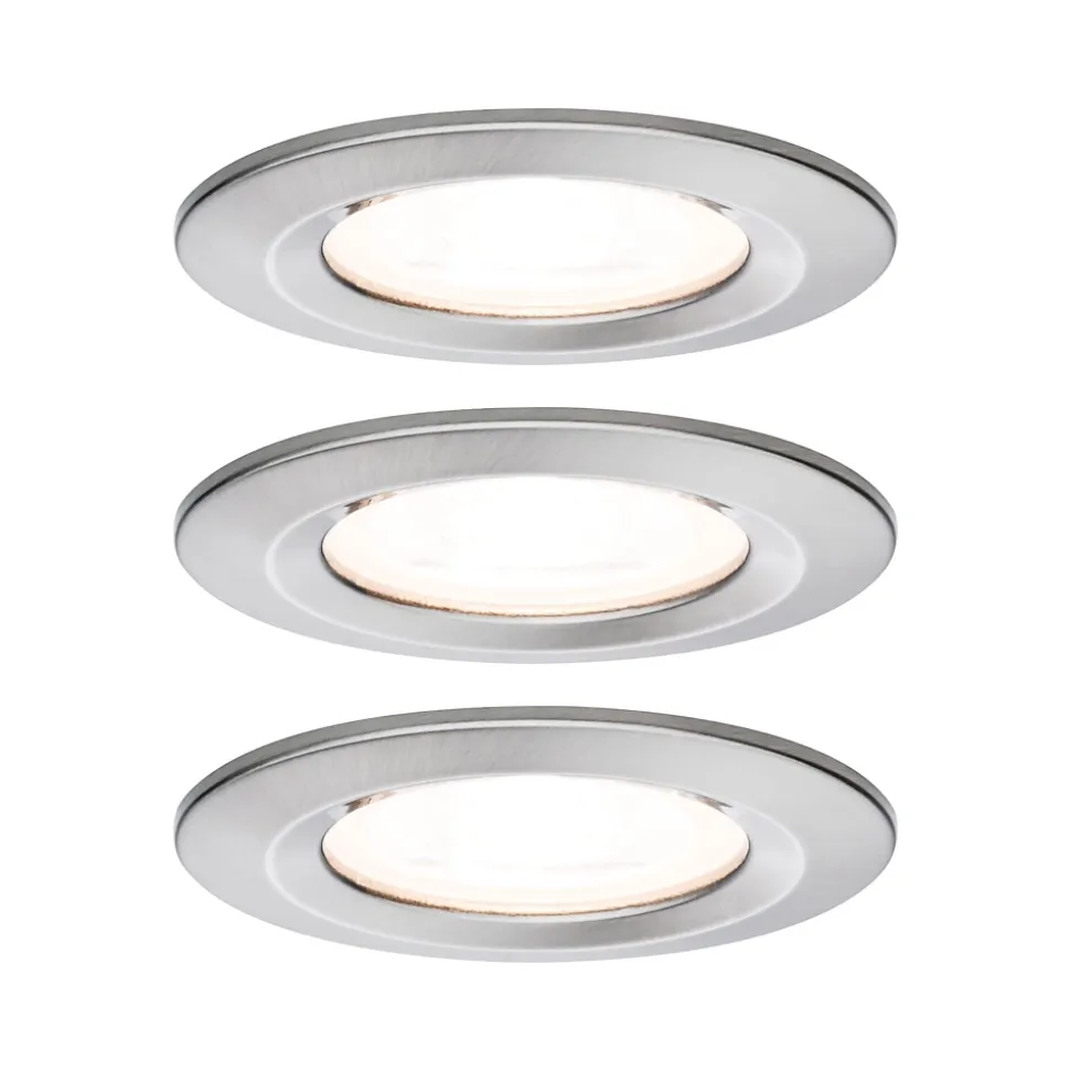 Les spots encastrés Nova ronds en Acier brossé avec 3×6,5W et 3x460lm offrent une lumière agréable, un design adapté et une haute efficacité énergétique. Le style pur n’est pas dévalorisé par des circlips : Comme l’ampoule est insérée par l’arrière, nul besoin de circlip. Grâce à la connexion 230 V directe, vous pouvez très facilement connecter des luminaires entre eux sans aucune limite. La fixation simple par ressorts de retenue conserve le plafond intact, même après plusieurs montages et démontages. La livraison inclut des ampoules LED GU10 performantes et durables dont la lumière blanc chaud crée une atmosphère conviviale.