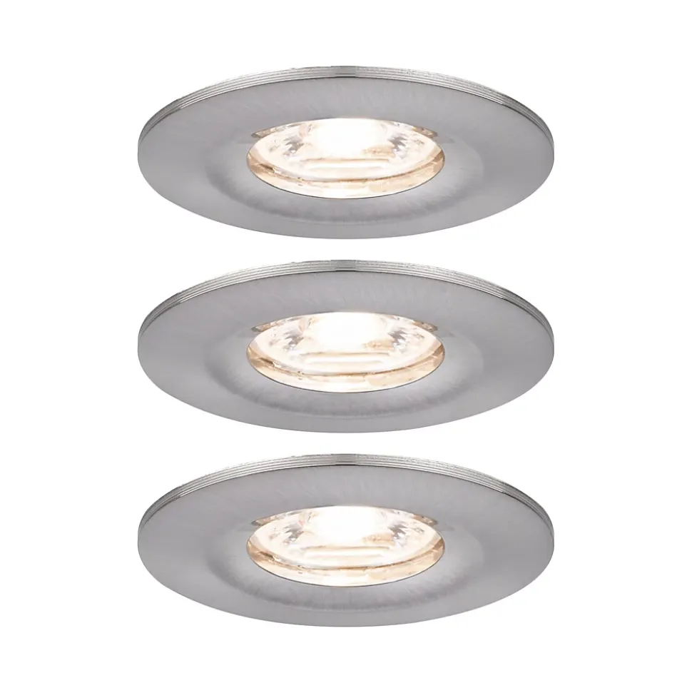 Kit composé de 3 luminaires fourni avec module LED|Température de couleur: 2700K – Blanc chaud|Pour raccordement direct au secteur 230V|Protection IP : IP44 – Protection contre les projections d’eau