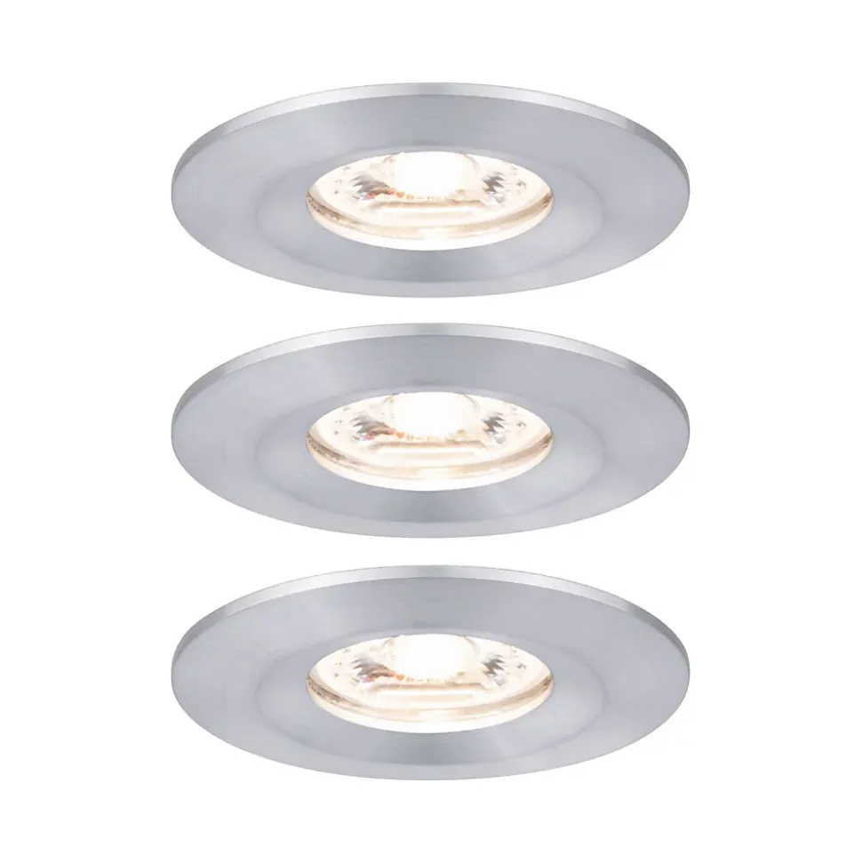 Kit composé de 3 luminaires fourni avec module LED|Température de couleur: 2700K – Blanc chaud|Pour raccordement direct au secteur 230V|Protection IP : IP44 – Protection contre les projections d’eau