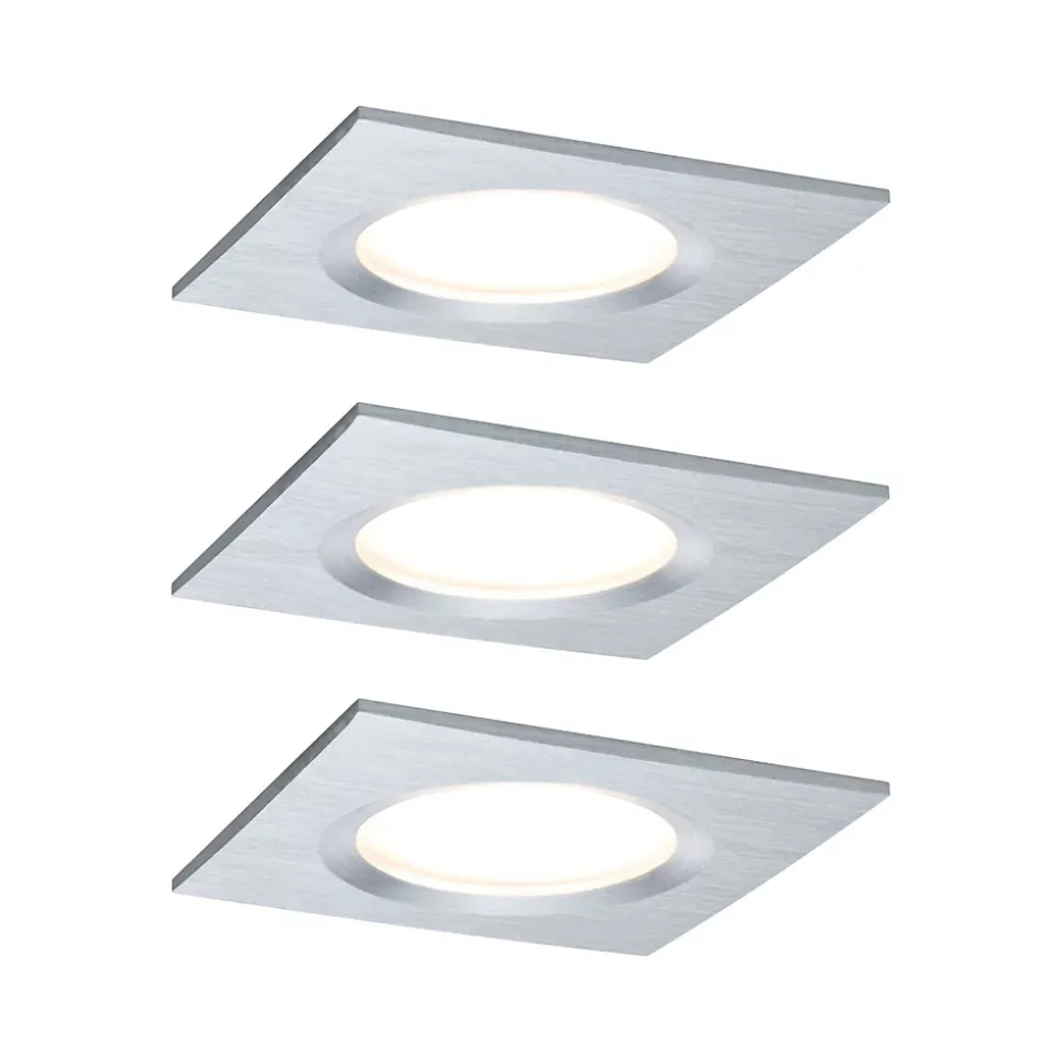 Les spots encastrés Nova Plus carrés en (kit de 3) en Alu tourné avec LED-Coin remplaçable, conviennent aussi bien à l’équipement de nouvelles installations qu’au remplacement d’équipements existants. De forme particulièrement plate, ils s’intègrent dans les plafonds disposant d’un espace creux de 30 mm seulement. Grâce à un raccordement par clips de fixation rapides, les luminaires individuels sont simples et rapides à monter. Leur variateur d’intensité permet un ajustement individuel de la luminosité offrant deux effets majeurs : vous jouissez d’une lumière de travail blanc chaud tout en baignant dans une ambiance cocooning. Avec leur protection anti-projections d’eau IP44, ces luminaires garantissent une lumière chaleureuse tant dans la salle de bain que dans la cuisine.