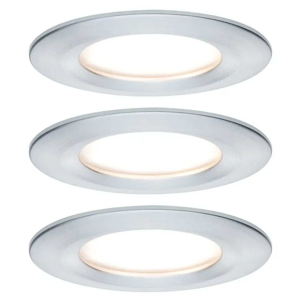 Les spots encastrés Nova Plus ronds en (kit de 3) en Alu tourné avec LED-Coin remplaçable, conviennent aussi bien à l’équipement de nouvelles installations qu’au remplacement d’équipements existants. De forme particulièrement plate, ils s’intègrent dans les plafonds disposant d’un espace creux de 30 mm seulement. Grâce à un raccordement par clips de fixation rapides, les luminaires individuels sont simples et rapides à monter. Leur variateur d’intensité permet un ajustement individuel de la luminosité offrant deux effets majeurs : vous jouissez d’une lumière de travail blanc chaud tout en baignant dans une ambiance cocooning. Avec leur protection anti-projections d’eau IP44, ces luminaires garantissent une lumière chaleureuse tant dans la salle de bain que dans la cuisine.