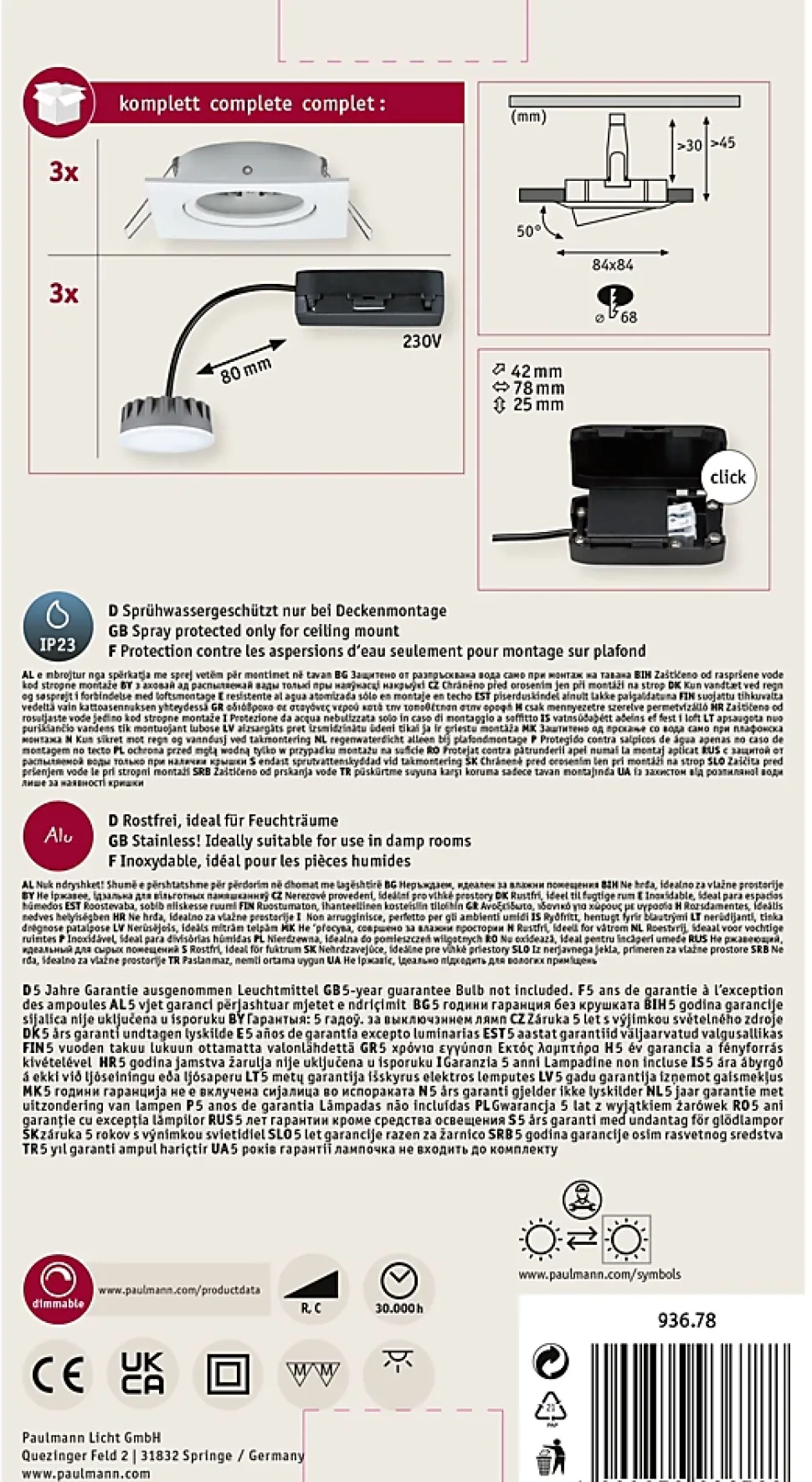 Température de couleur: 2700K – Blanc chaud|Pour raccordement direct au secteur 230V